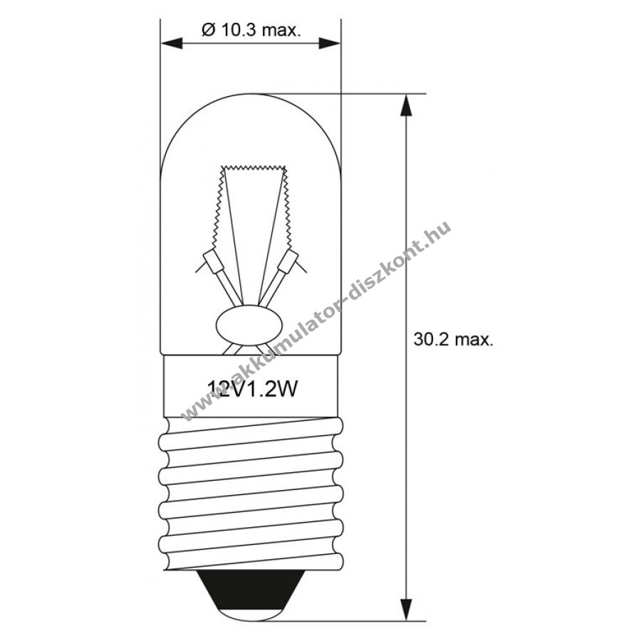 Melegfehér fényű csőizzó csavaros E10 foglalattal 12V DC feszültségre és 100mA áramra. Alkalmas jelzőlámpákban és világító jelzőkben való használatra. Használható zseblámpákban és kerékpárokon világítóelemként. Sokoldalú izzó modellvasútakhoz, babaházakhoz vagy betlehemi világításhoz. Miniatűr Edison csavaros (MES) foglalat C-2R szálas T10 csőizzóval.