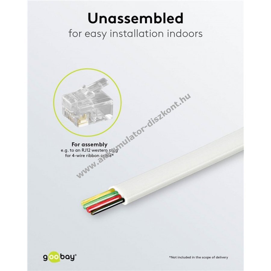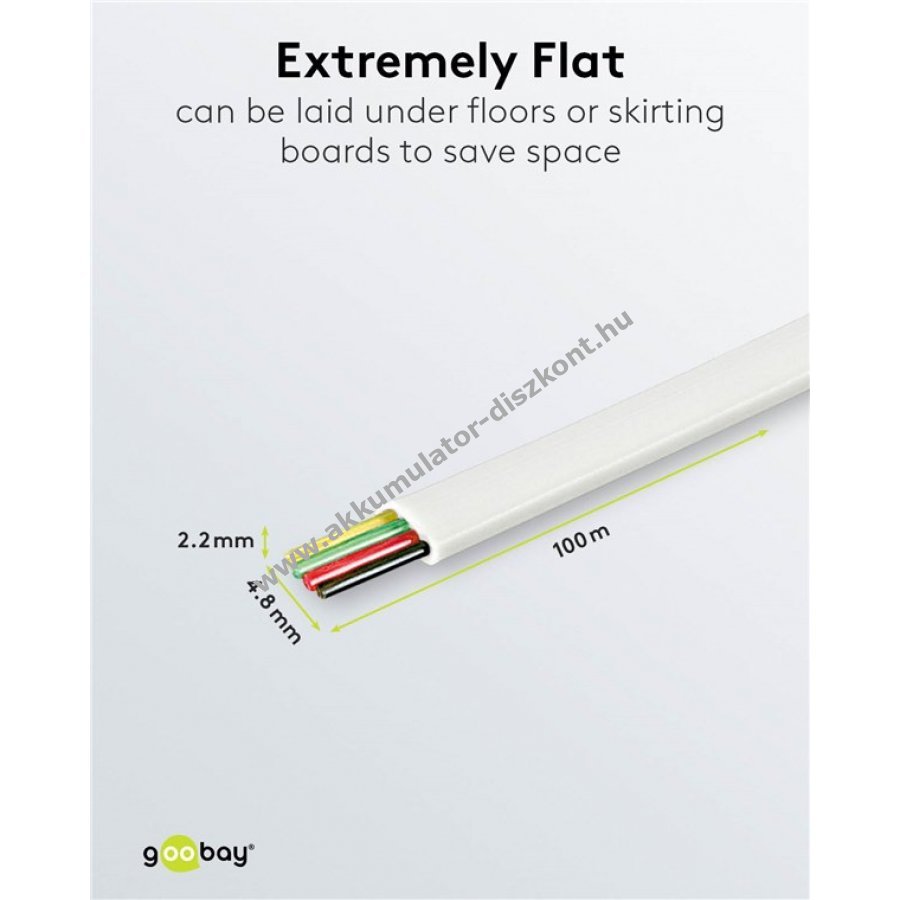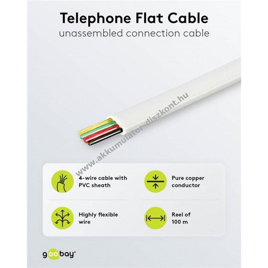 Kiváló minőségű telefonkábel stabil jelátvitellel és tartós csatlakozással. 4 eres lapos kábel kis hajlítási sugárral és nagy rugalmassággal.