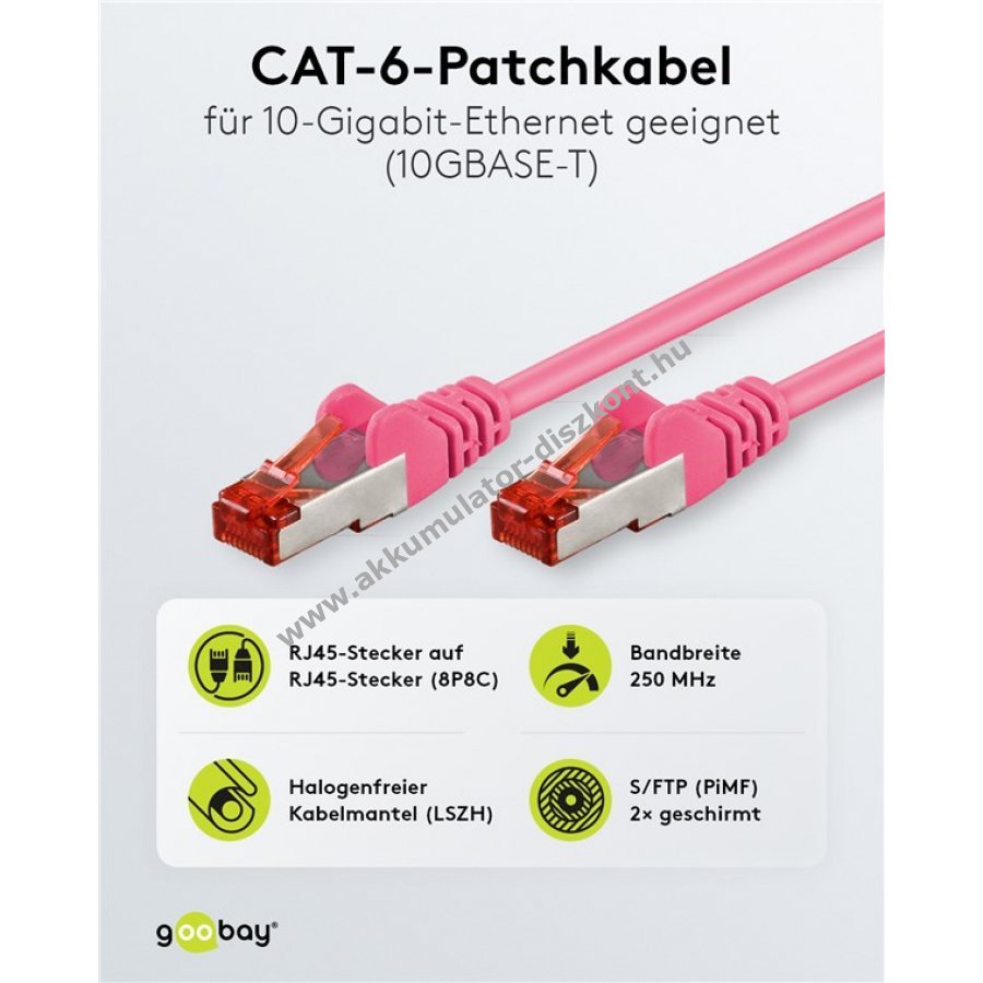 Kiváló minőségű CAT 6 patchkábel stabil és gyors hálózati kapcsolat biztosítására.
