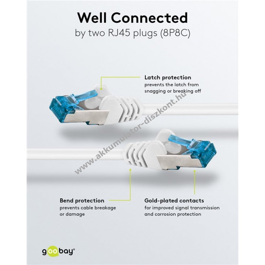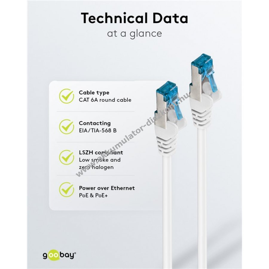 Goobay CAT 6A hálózati kábel S/FTP 10 Gbit 2x RJ45 fehér LSZH