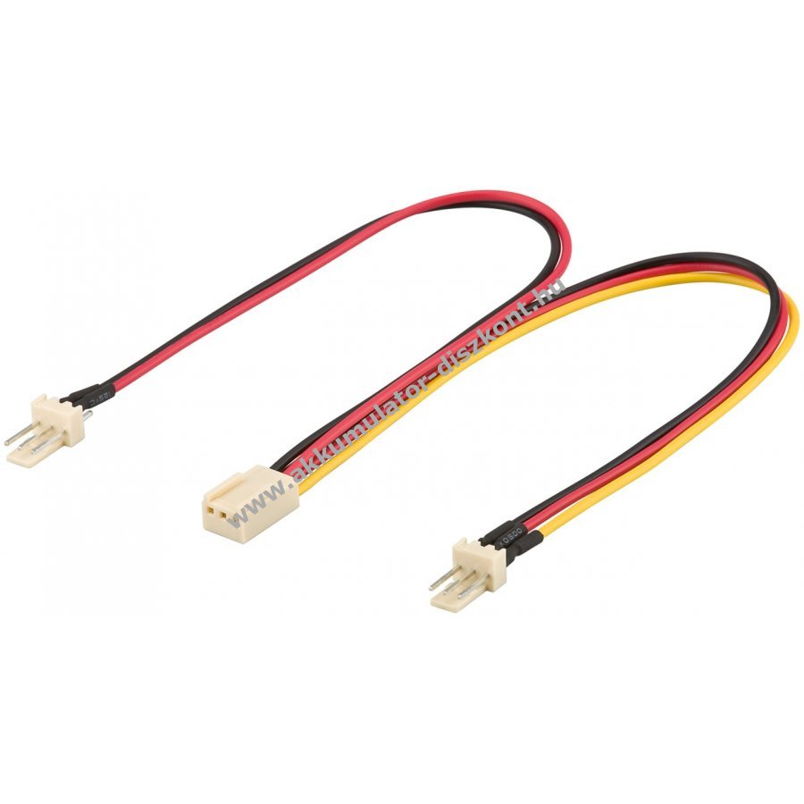 Két ventilátor egyidejű csatlakoztatására alkalmas PC Y-tápkábel 3 tűs dugó és aljzat kivitelben 0,22 m hosszúságban