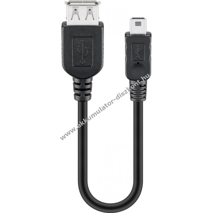 USB 2.0 Hi-Speed adapter 0,2 m hosszúsággal porvédő tasakkal USB 2.0 A típusú aljzatból USB 2.0 Mini B típusú 5 tűs csatlakozóba 2,5W teljesítmény 0,5A áramerősség 480 Mbit/s adatátvitel