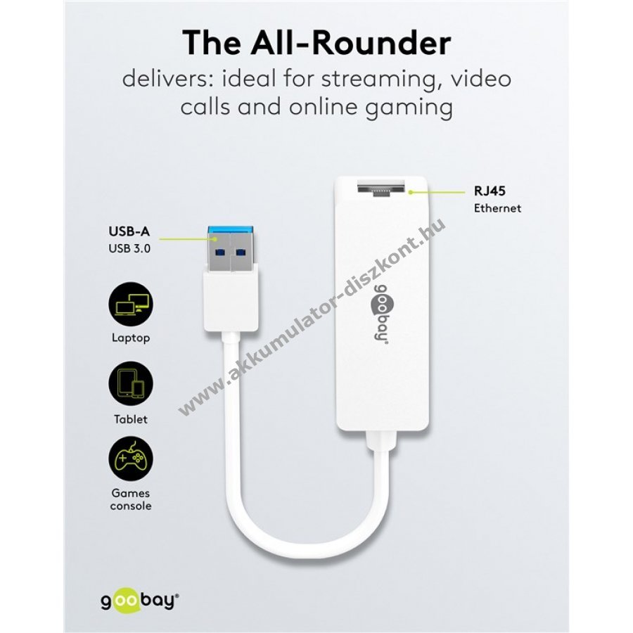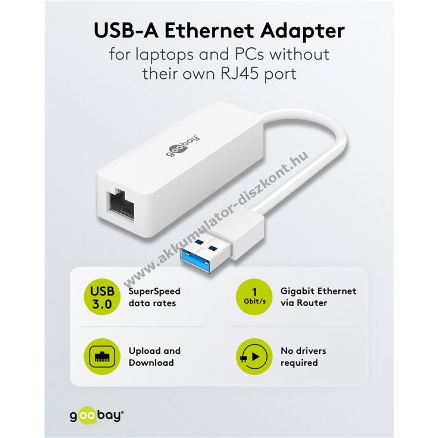 - USB-A porton keresztül 10/100/1000 Mbit/s sebességű teljes duplex hálózati kapcsolat