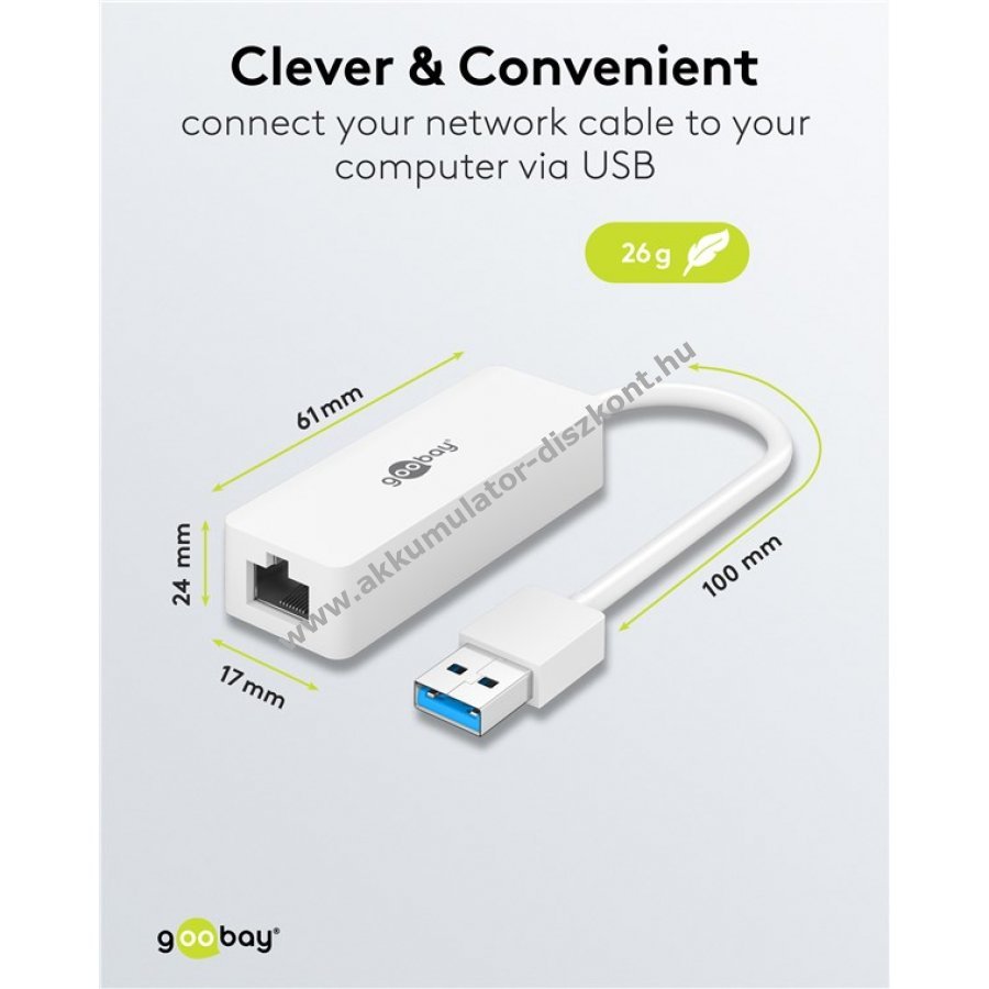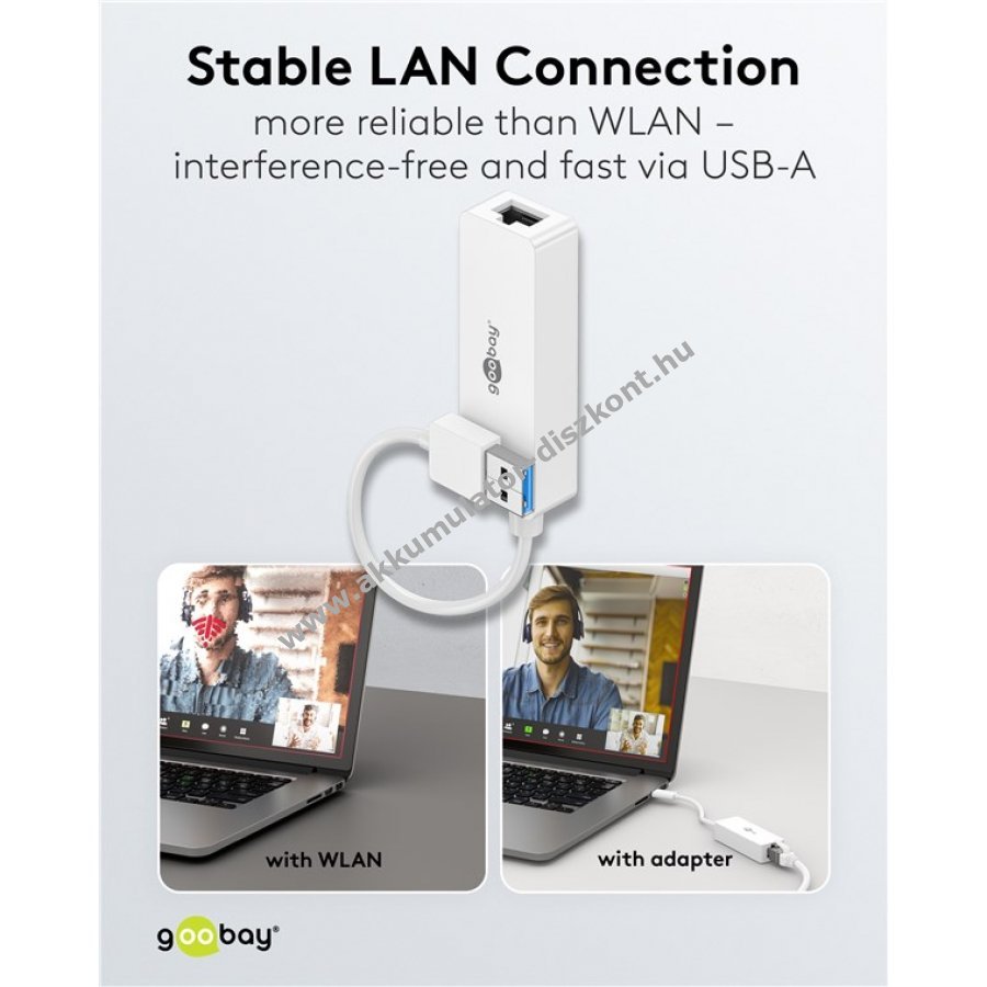 A vezetékes internet stabilabb kapcsolatot biztosít, mint a WiFi, de a laptopon nincs Ethernet port. Ez az USB-LAN adapter kényelmesen csatlakoztatja a számítógépet hálózati kábelhez. Ideális online játékhoz videóhíváshoz és streaminghez gigabit Ethernet sebességgel késleltetés és kapcsolatprobléma nélkül.