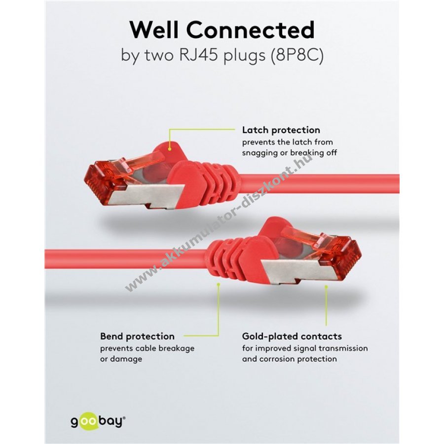 - reteszvédelem az RJ45 csatlakozón a biztos csatlakozás érdekében