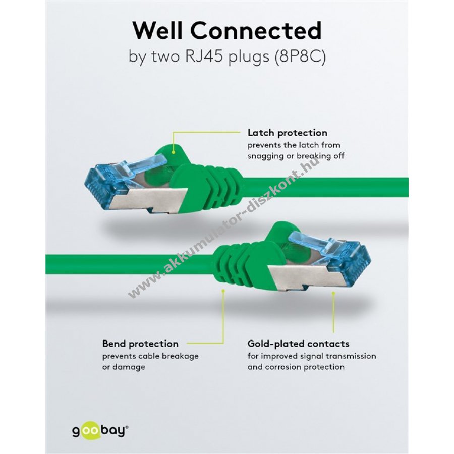 A kábel törés elleni védelme és az RJ45 csatlakozó reteszvédelme garantálja a tartós használatot.