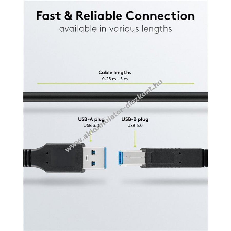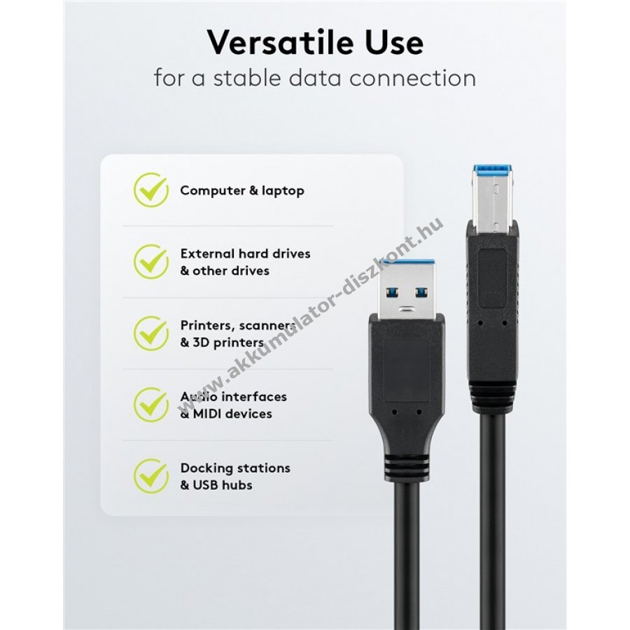 USB 3.0 kábel USB-A csatlakozóval USB-B eszközök, például nyomtatók vagy külső merevlemezek csatlakoztatásához