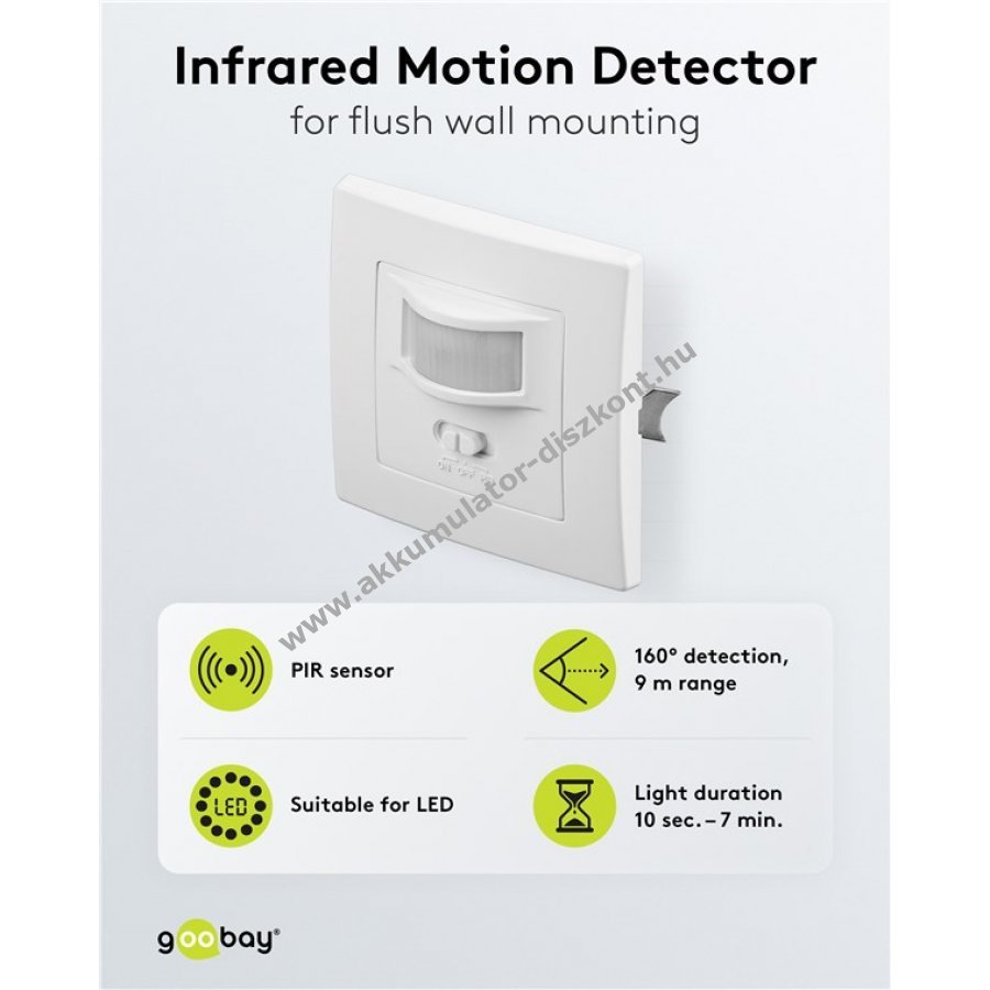 Goobay infravörös mozgásérzékelő falba süllyeszthető 160° 9m IP20