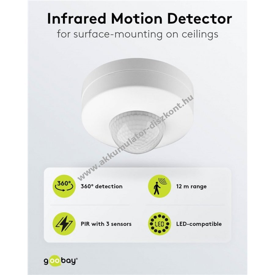 Goobay infravörös mozgásérzékelő mennyezeti felszereléshez 360 fok 12m hatótáv