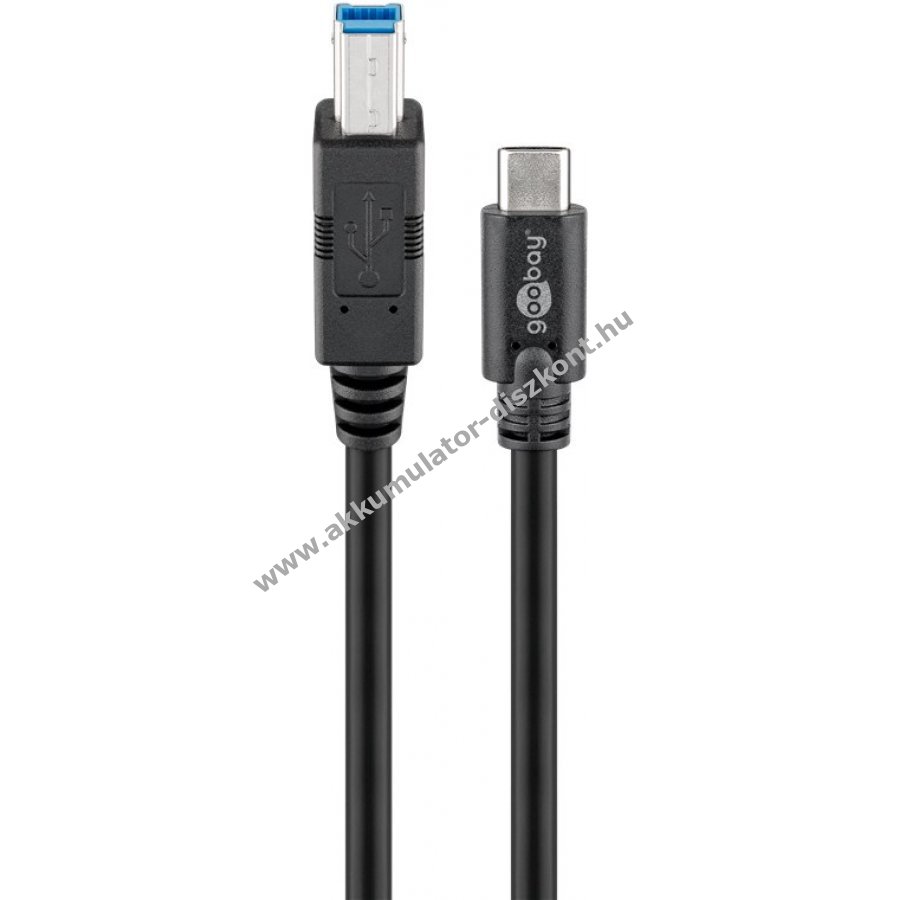 Goobay USB-C-USB-B kábel 1m 15 W 3 A USB 3.0 5 Gbit/s fekete