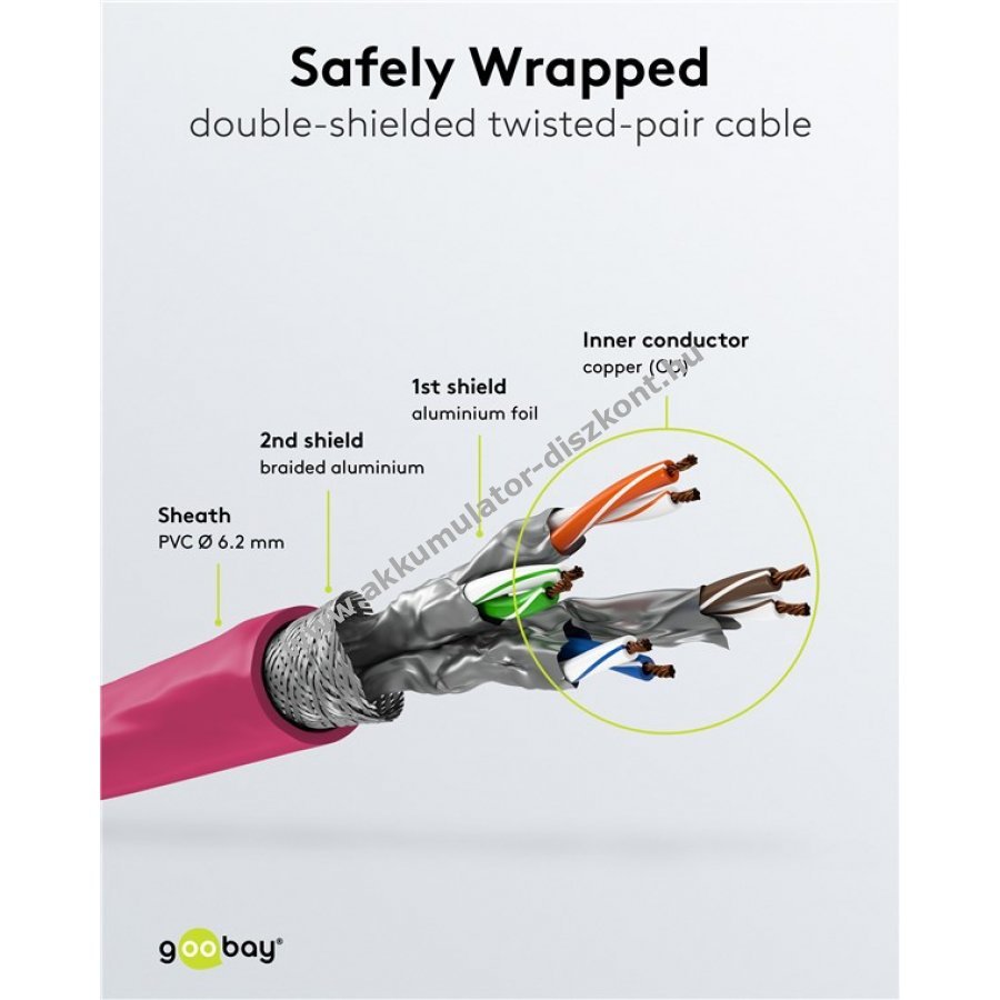 S/FTP árnyékolás alumínium fólia és fonott réteggel a zavartalan jelátvitelért.