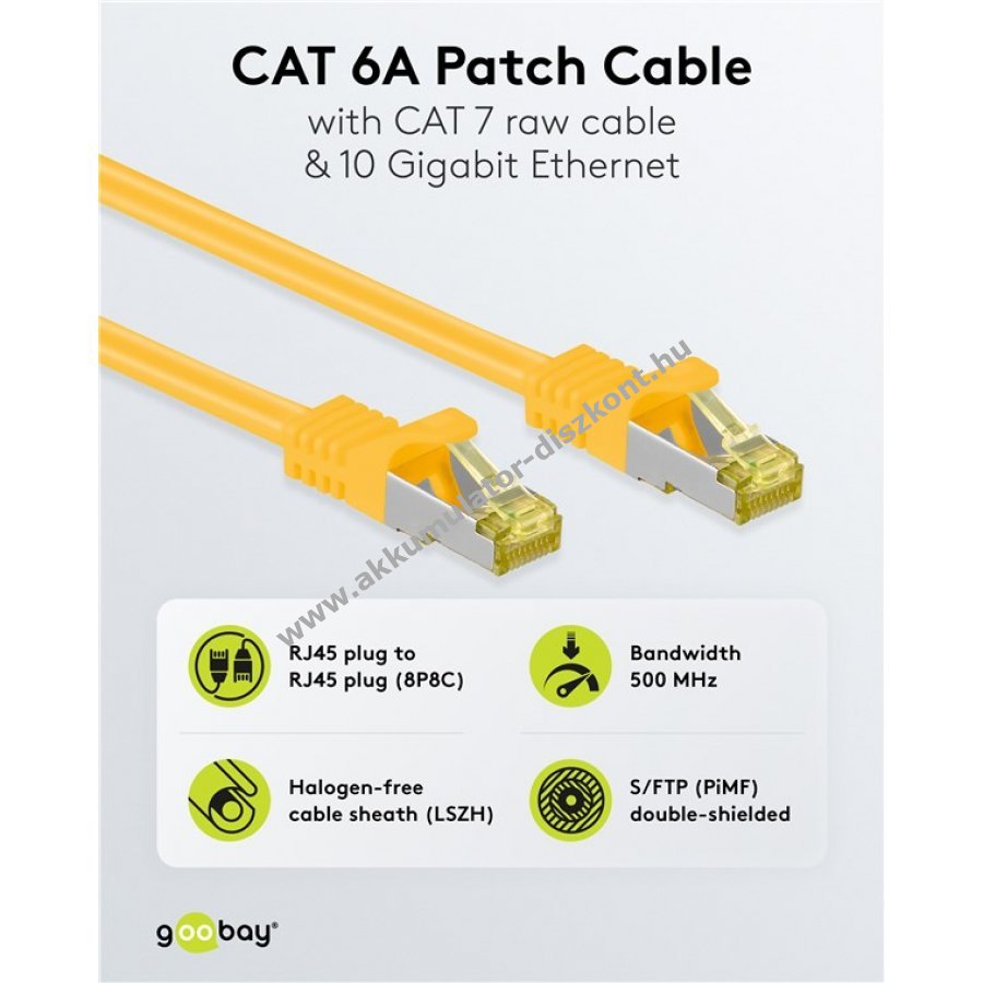 Kiváló minőségű CAT 7 nyerskábel 600 MHz és CAT 6A RJ45 csatlakozó 500 MHz sebességgel stabil és gyors hálózati kapcsolatot biztosít. Kettős árnyékolású S/FTP kialakítás alumínium fólia és hálózattal a zavartalan jelátvitelért. Alkalmas 8K 60 Hz és 4K 120 Hz felbontású képátvitelre. 50µ aranyozott érintkezők és minőségi réz vezetők garantálják a megbízható teljesítményt. A kábel LSZH halogénmentes külső borítással rendelkezik, PoE és 10-Gigabit Ethernet támogatással. Védőgallér és reteszvédelem megakadályozza a csatlakozó sérülését. Ideális otthoni és irodai hálózatokhoz, valamint nagysebességű internetkapcsolathoz játék konzolokhoz.