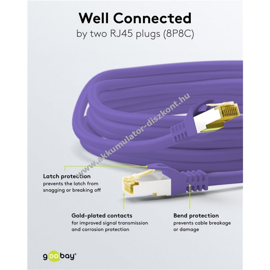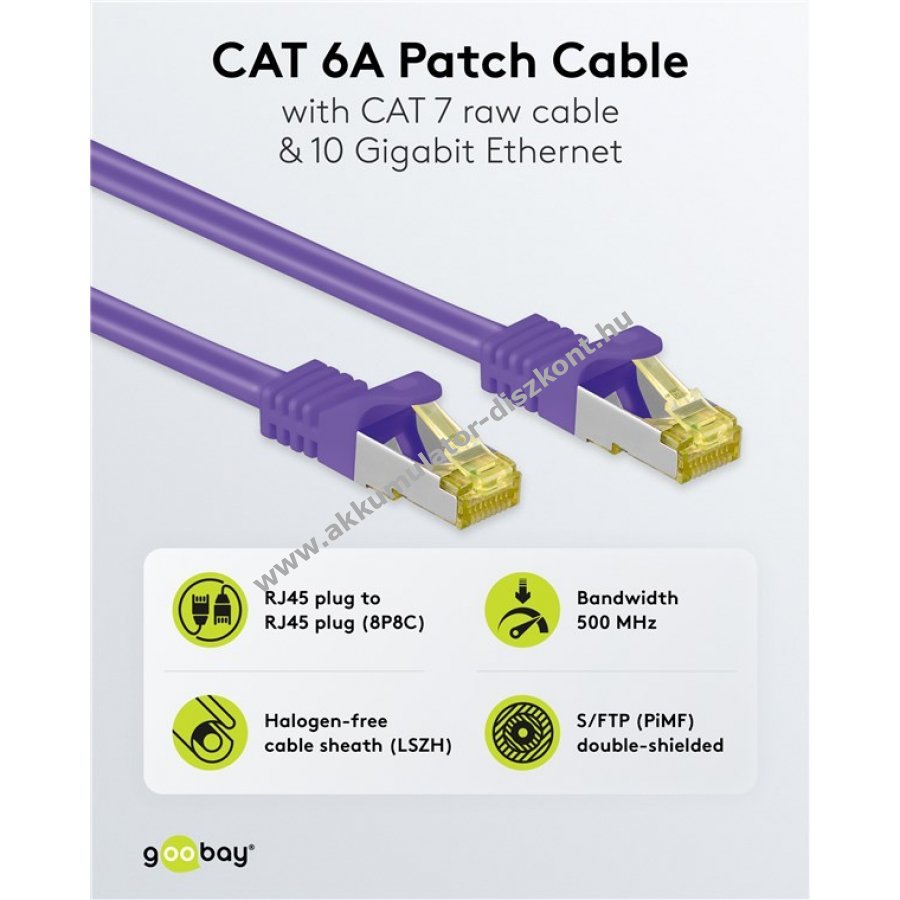 - dupla árnyékolású LAN-kábel CAT 7 600 MHz és RJ45 CAT 6A 500 MHz csatlakozókkal