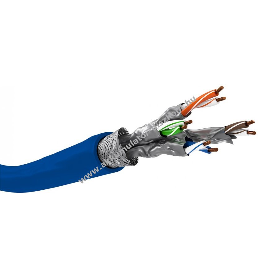 S/FTP teljes árnyékolás alumínium fólia és fonat kombinációjával az egyes érpárok körül és a kábelburkolaton.