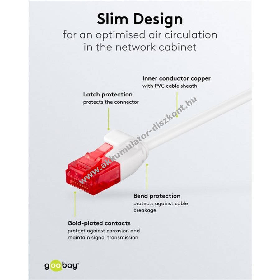 A Goobay SLIM hálózati kábel szűk helyeken és nagy eszközsűrűségű környezetekhez készült például szerver szekrényekhez és adatközpontokhoz.