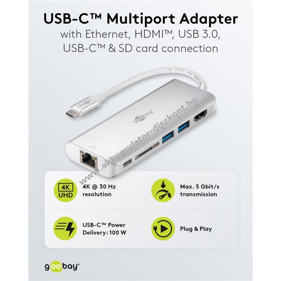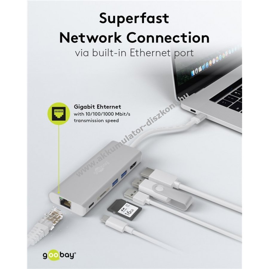 USB-C™ Premium Multiport-Dock erweitert ein USB-C™ Gerät um einen Ethernet- ein HDMI- zwei USB 3.0-