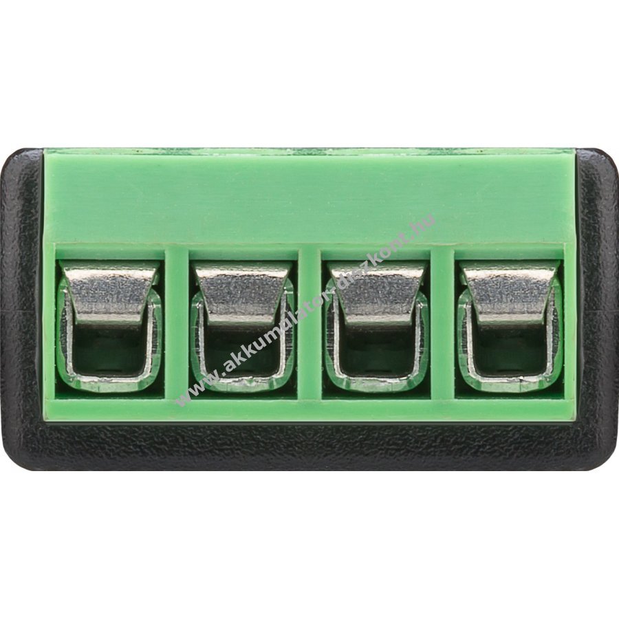 - 4 tűs terminálblokk érintkezők: bal és jobb audio jel, föld