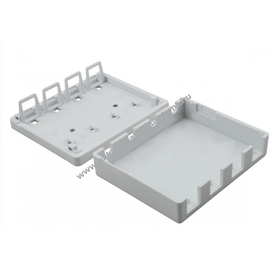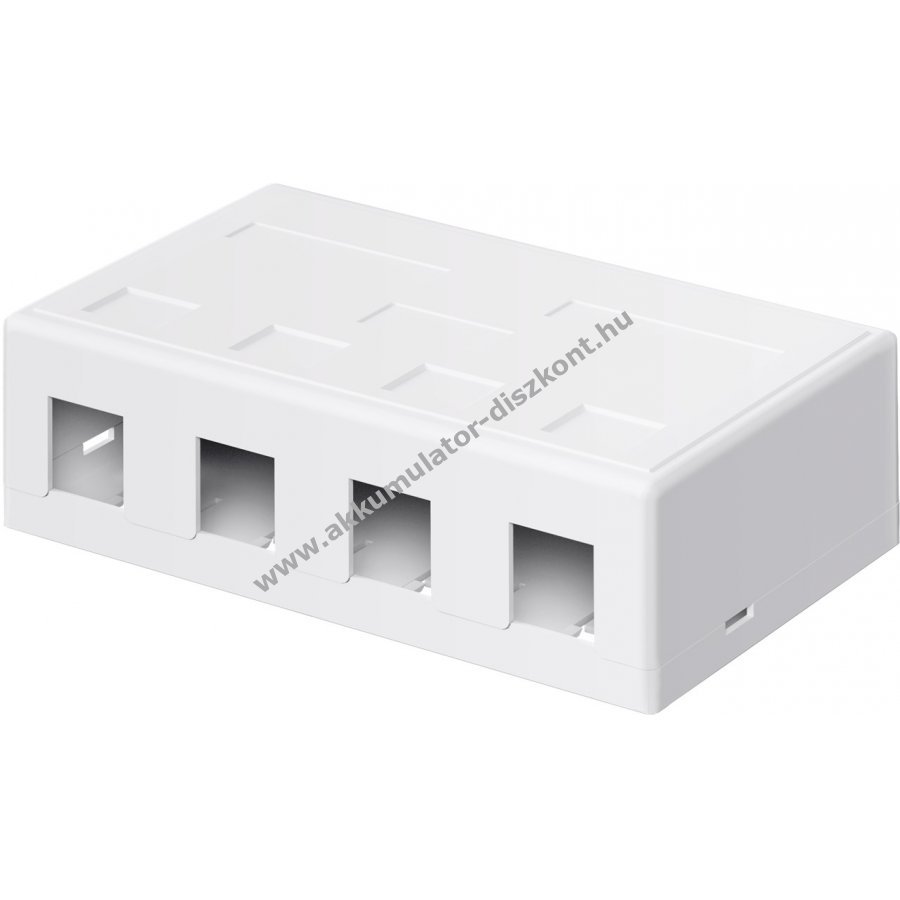 Üres elosztóház 4 darab Keystone modulhoz Snap-In rögzítéssel, modulok nem tartozékok. Alkalmas RJ45 aljzatok beépítésére és előkészített hálózati kábelek csatlakoztatására. Használható laborokban, műhelyekben, otthoni szórakoztató rendszerekben és hálózati telepítésekben. Patch panel tartozék szerelős csavarokkal és kábelkötegelőkkel falra vagy asztalra történő rögzítéshez. Portok 180°-os kábelvezetése biztosított.
