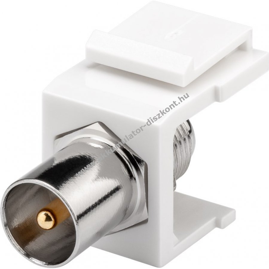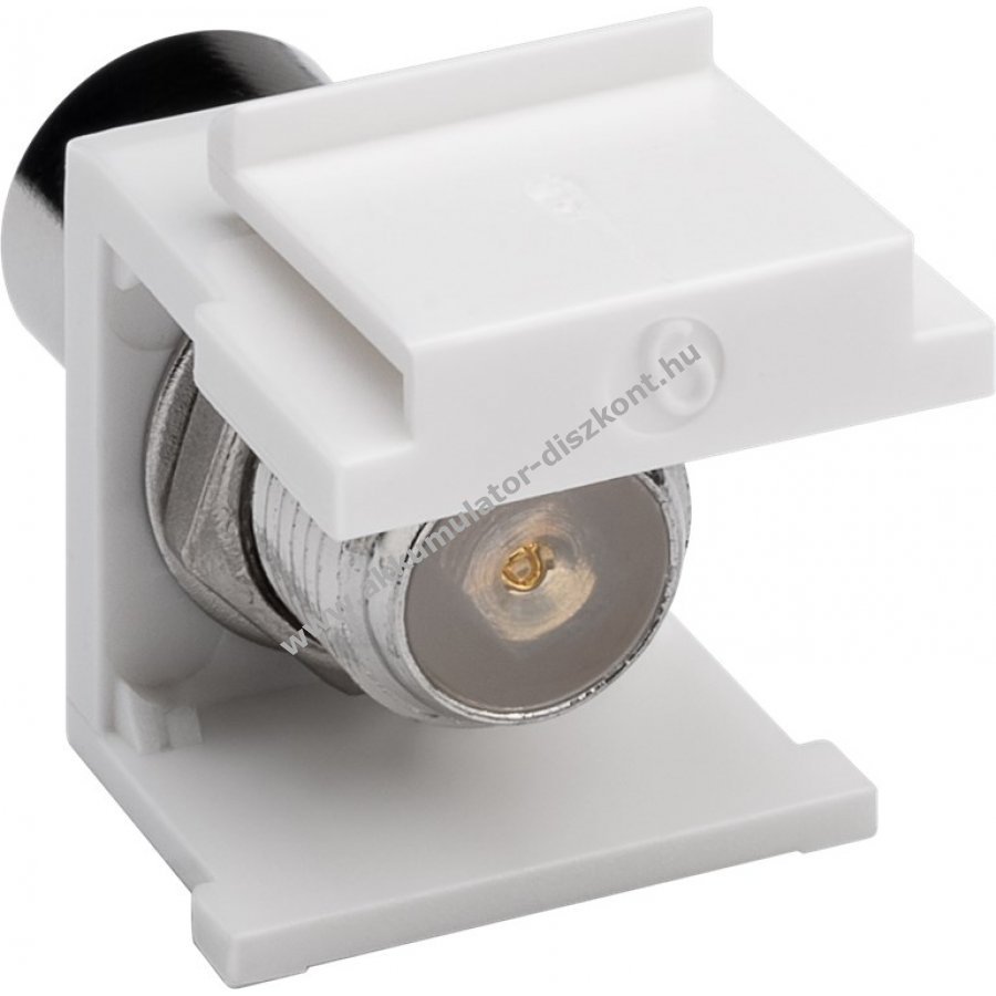 Tartós műanyag ház SAT csatlakozóval keystone patchpanelekhez hálózati aljzatokhoz és házakhoz 75 ohmos ellenállással Antennacsatlakozó egyszerű snap-in rögzítéssel F-buszó az antennakábel csatlakoztatásához Alkalmas laborokban műhelyekben otthoni szórakoztatásban és hálózati telepítésben