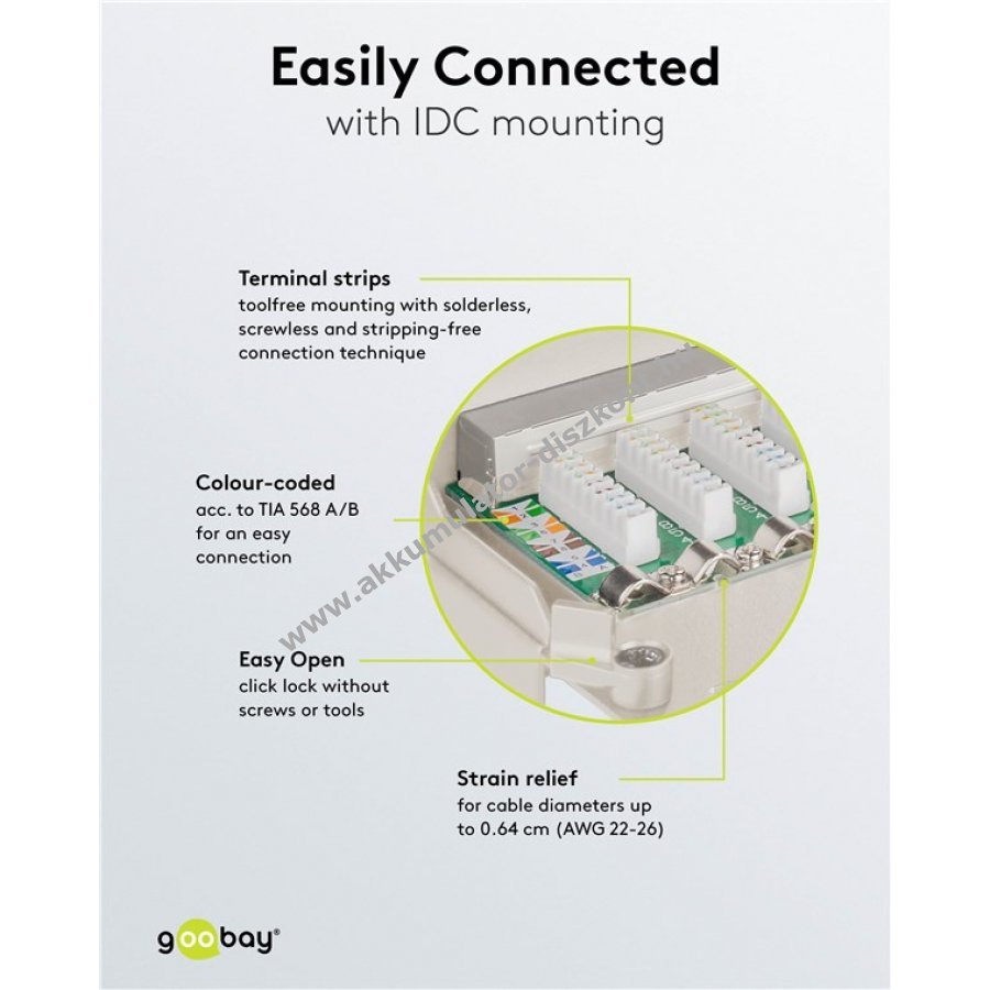 Kábelátmérő 0,64 mm-ig (AWG 22-26)