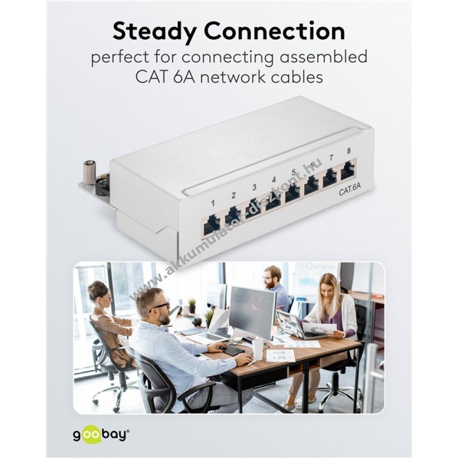 Robusztus fém ház árnyékolt csatlakozóhelyekkel a kiváló kapcsolatért 8 port RJ45 aljzattal CAT 6A hálózati kábelekhez