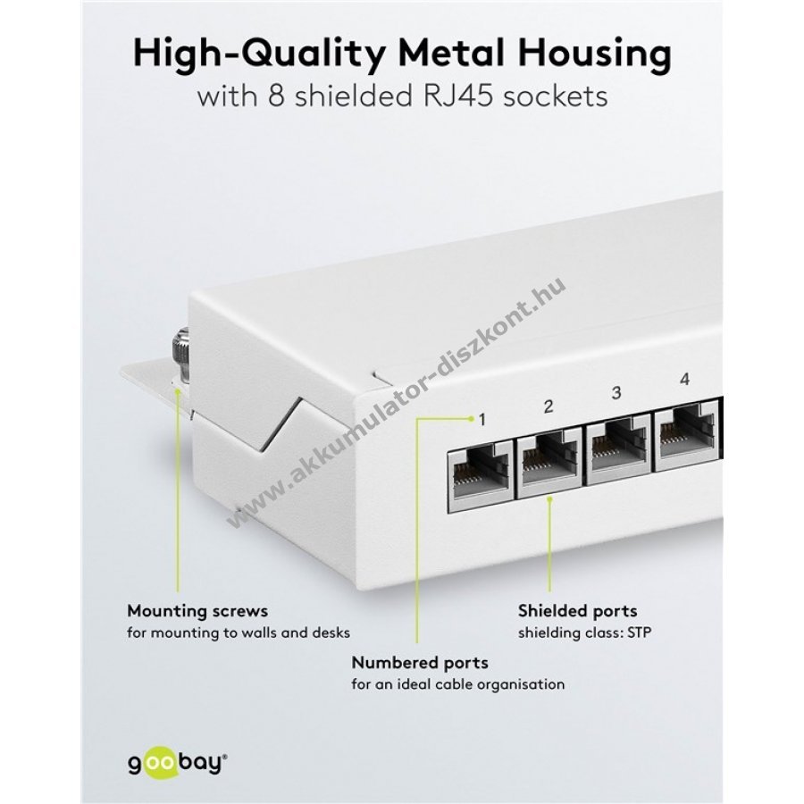 Masszív fém ház árnyékolt csatlakozókkal a kiváló kapcsolatért 8 porttal az összes szükséges LAN kábel csatlakoztatásához