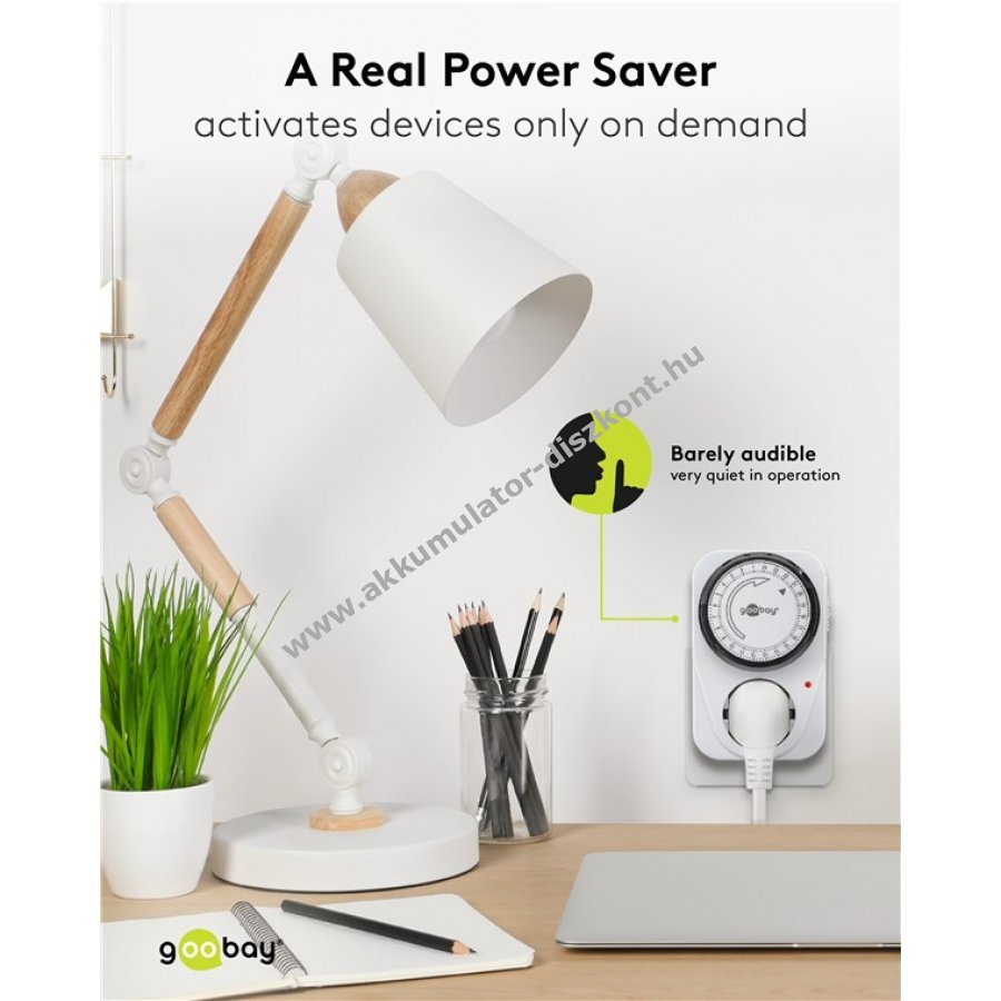 Analóg Goobay időkapcsoló konnektorhoz pontos vezérlést biztosít elektronikus készülékekhez 15 perces kapcsolási intervallummal akár napi 96 kapcsolásig