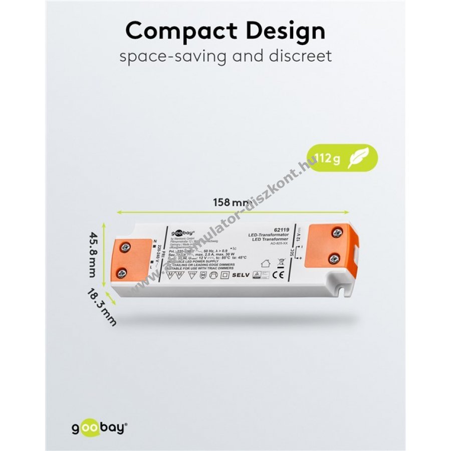 Alacsony hőtermelés és lapos forma helytakarékos beépítést tesz lehetővé, akár bútorokba is.