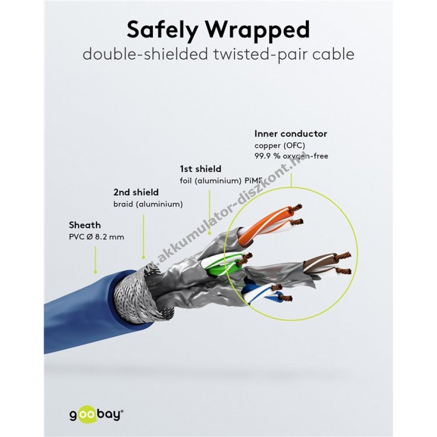 - S/FTP árnyékolás egyedi alumínium fólia és fonott alumínium réteggel