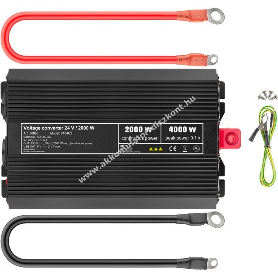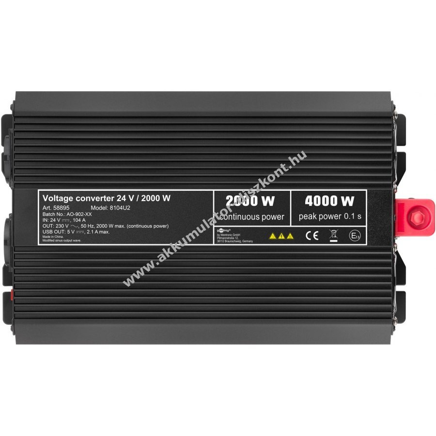 A készülék 24 V egyenáramot alakít át 230 V váltóárammá vagy 5 V egyenárammá