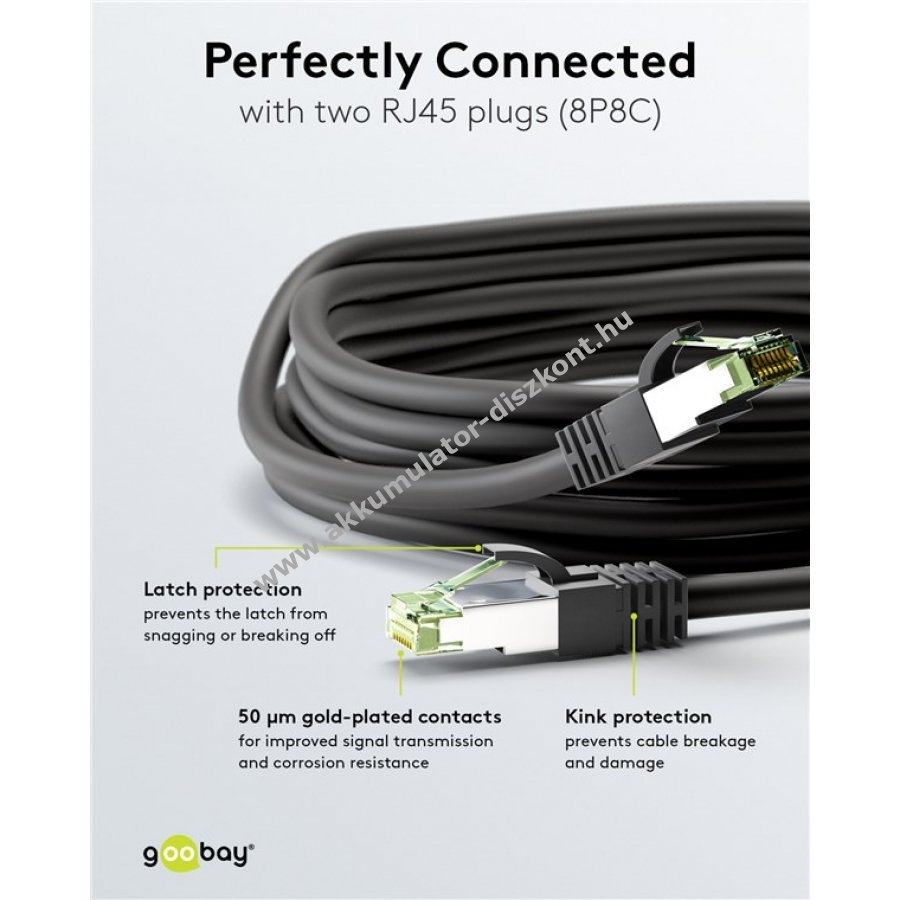 - Nagysebességű internetkábel 25/40GBASE-T Ethernethez (40 Gigabit támogatással) és visszafelé kompatibilis 10BASE-T, 100BASE-TX, 1000BASE-T hálózatokkal