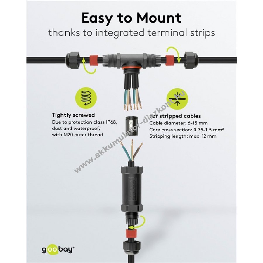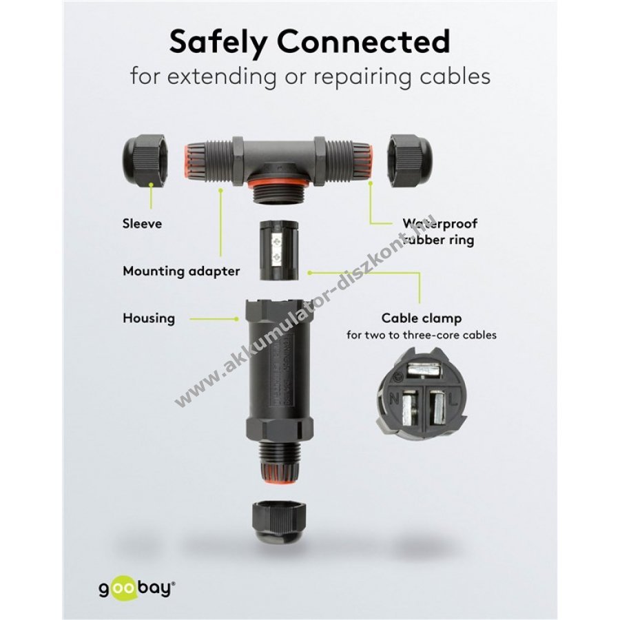 Biztonságos és egyszerű megoldás két- vagy háromeres kábelek csatlakoztatására hosszabbítására vagy javítására.