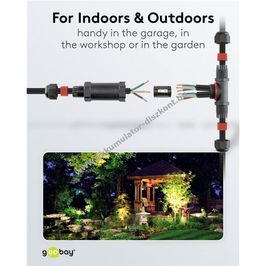 Kültéri és nedves helyiségekben használható kábelátvezető technikai eszközök egyszerű csatlakoztatásához például kertben garázsban vagy hobbi műhelyben.