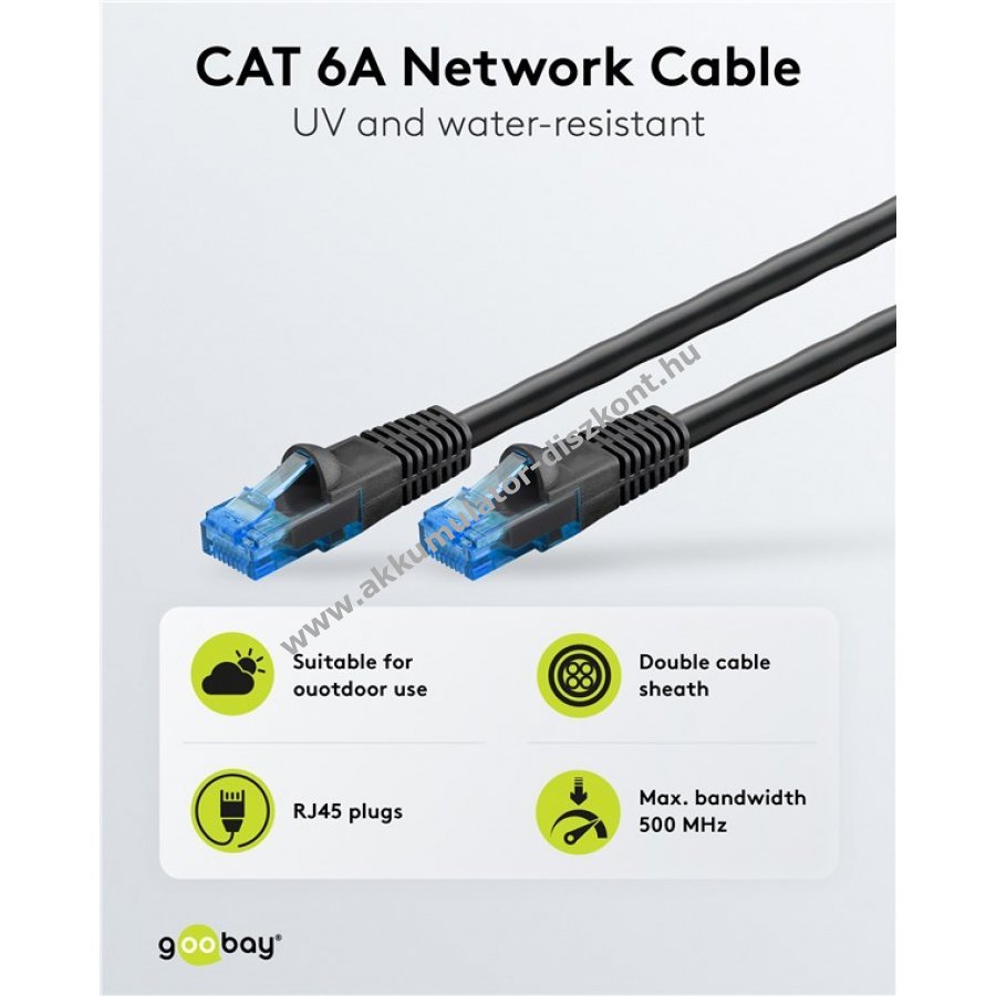 Goobay CAT 6A kültéri U/UTP hálózati kábel 20m fekete