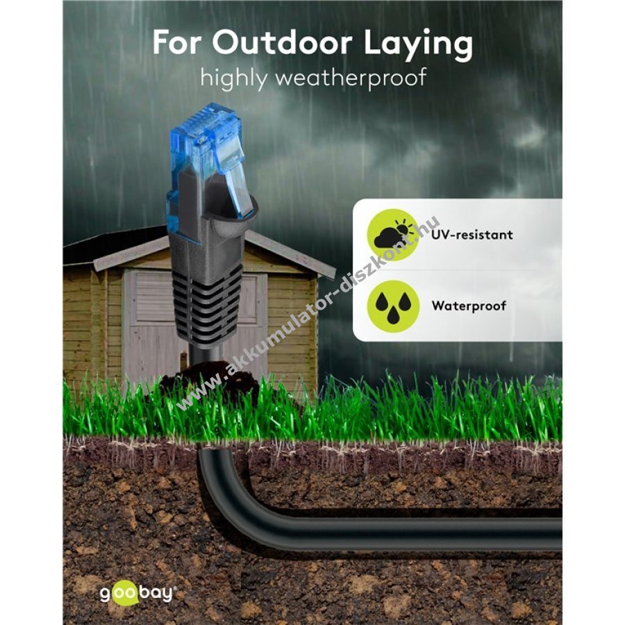 A Goobay kültéri hálózati kábel ideális kültéri használatra kertben kempingben épületfalakon balkonon és megfigyelőkamerák csatlakoztatásához