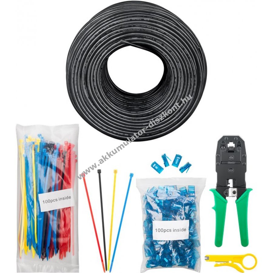 - 1x CAT 6A LAN kábel 1x krimpelő fogó 100x színes kábelkötegelő 100x RJ45 csatlakozó