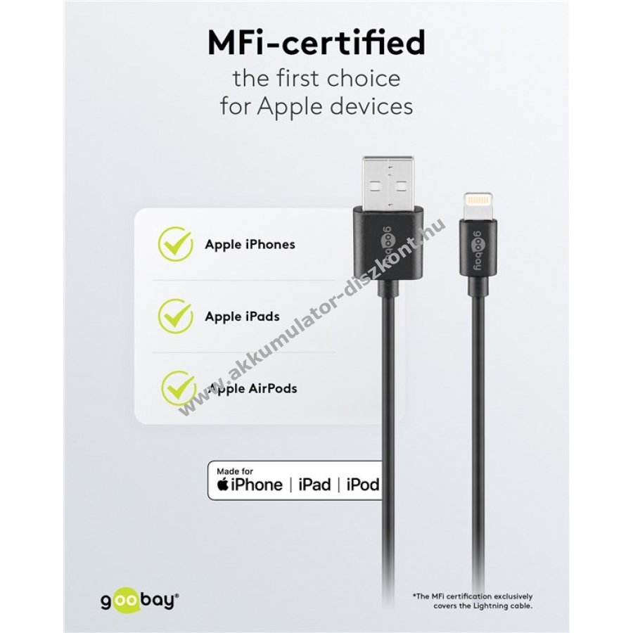Az Apple Lightning-kábellel ellátott Goobay töltő gyors és megbízható töltést biztosít.