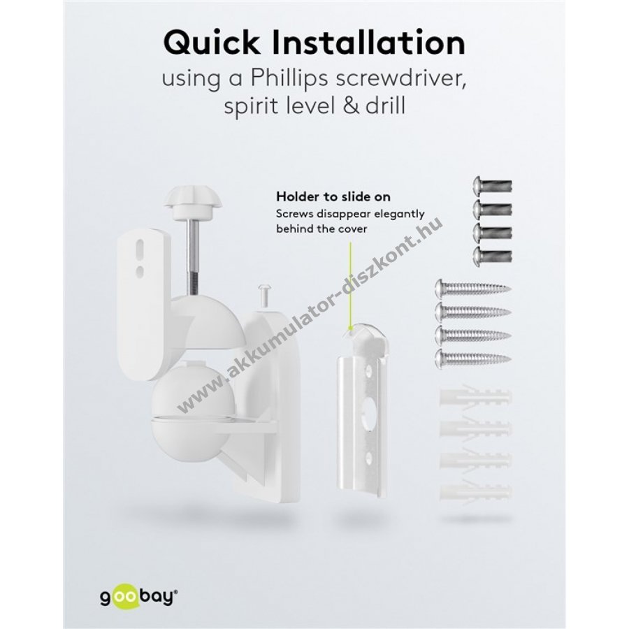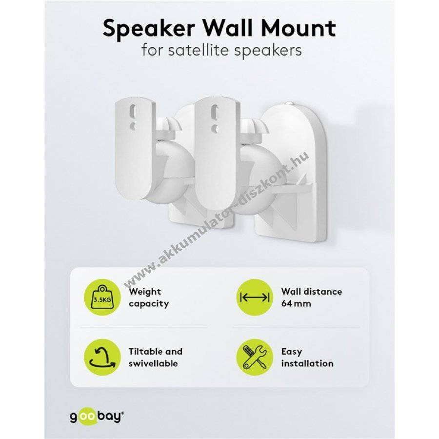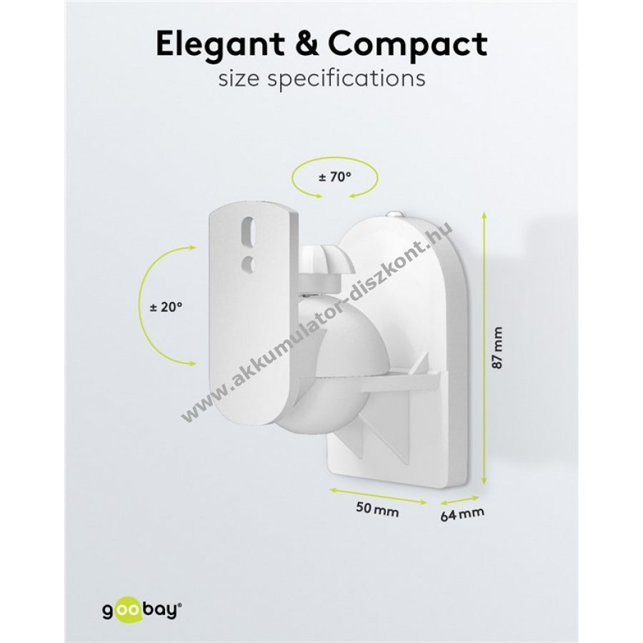 Univerzális fali tartó műholdas hangszórók egyszerű és gyors felszereléséhez. 6,4 cm távolságot tart a faltól.