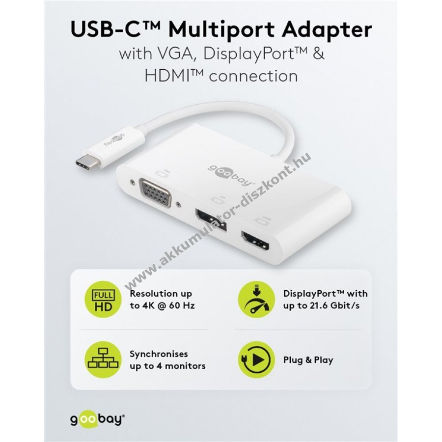 USB-CT Multiport-Adapter VGA+DP+HDMIT erweitert ein USB-CT-Gerät um einen HDMIT- einen DisplayPort