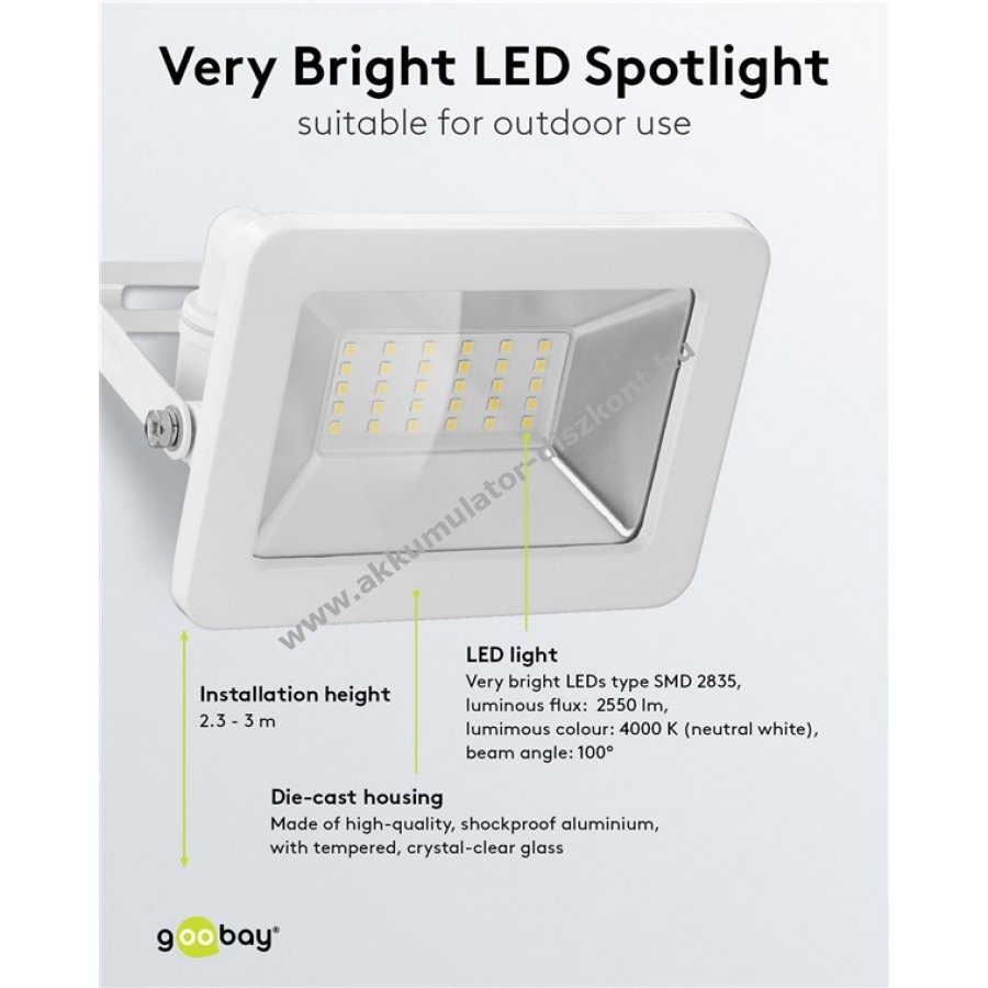Goobay LED kültéri reflektor 30W 2550lm 4000K M16 kábelcsatlakozó