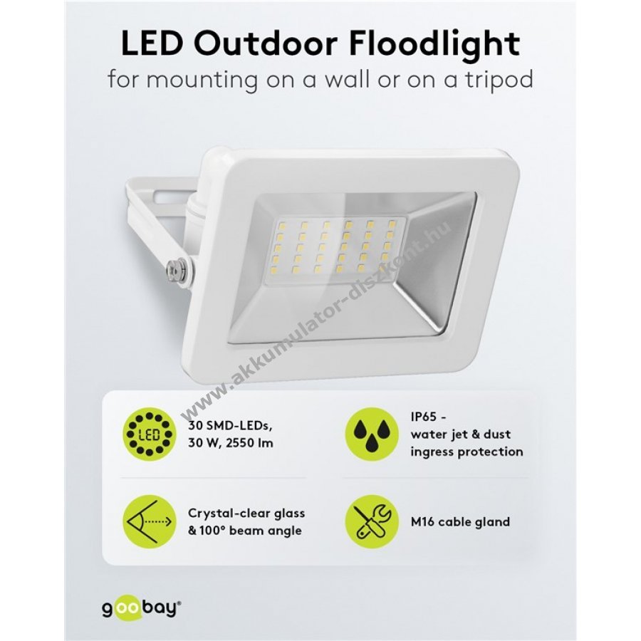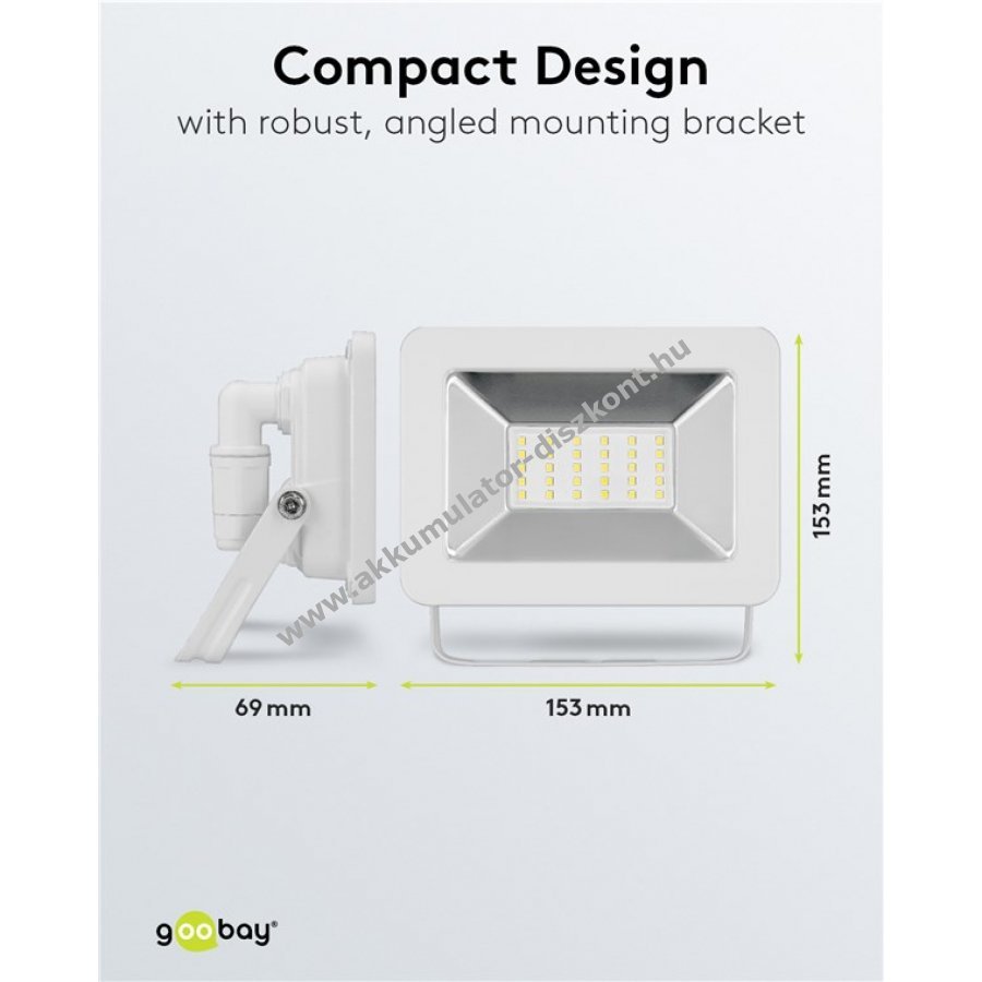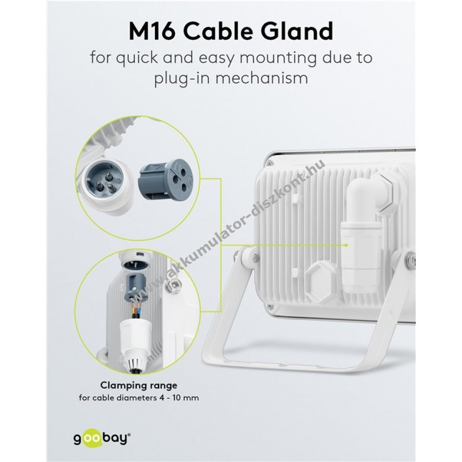 Nagyon fényes és praktikus LED reflektor kompakt kialakítással kültéri használatra házbejáratok, garázsok, kocsibeállók, homlokzatok és bejáratok megvilágításához. Gyors és egyszerű felszerelés az M16 kábelcsatlakozóval, amely 4-10 mm kábelátmérőhöz alkalmas. Nagy, 100 fokos fényeloszlásával ideális kertvilágításra vagy homlokzatok megvilágítására. Stabil, döntött tartófüllel falra vagy állványra szerelhető, akár 180 fokos forgatási lehetőséggel. Tartós, ütésálló alumíniumöntvény házzal és edzett üveggel rendelkezik kültéri hosszú élettartamért. Az energiatakarékos LED technológia akár 80%-kal kevesebbet fogyaszt, mint a halogén reflektorok. Használható kertvilágításként is.