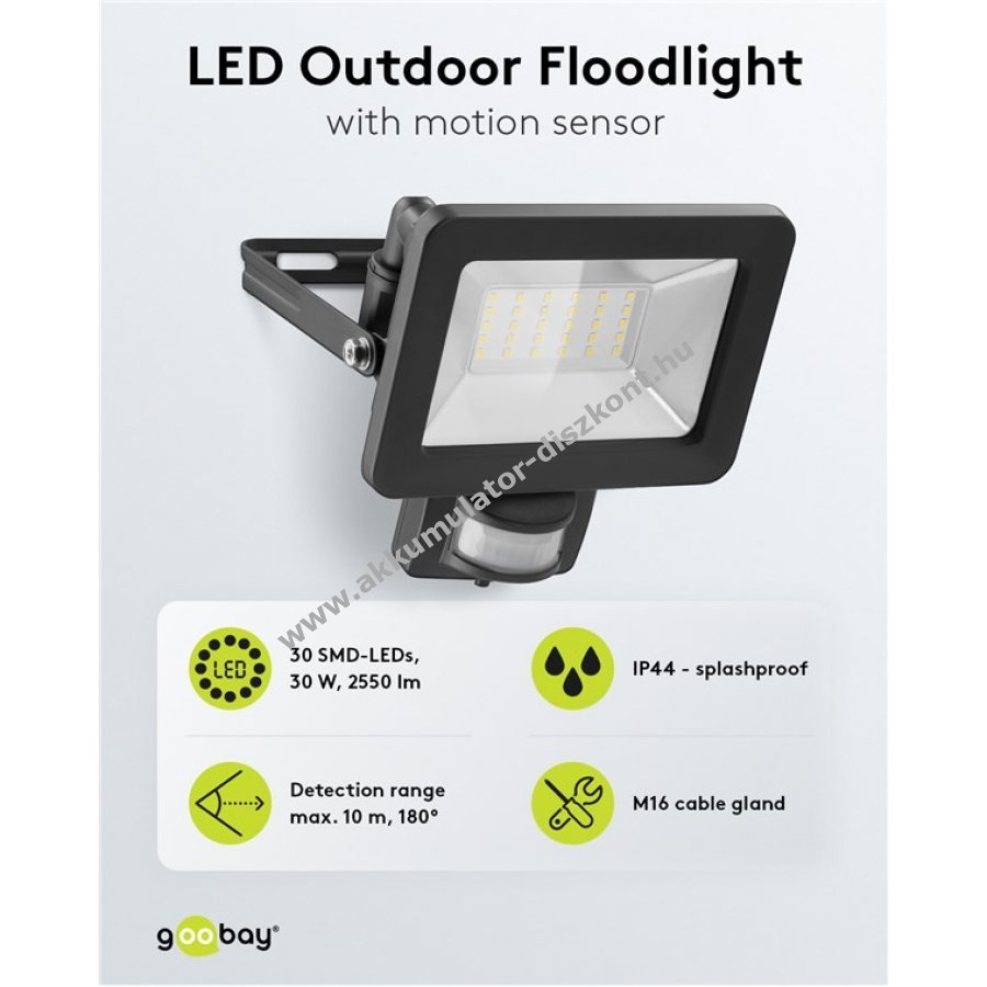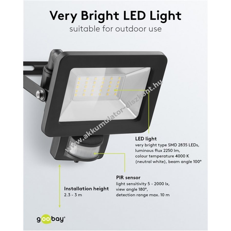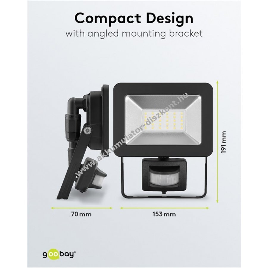 Nagyon fényes és praktikus LED reflektor kompakt kialakítással házbejáratokhoz garázsokhoz kocsibeállókhoz homlokzatokhoz és bejárati utakhoz Ideális kerti reflektorként is használható