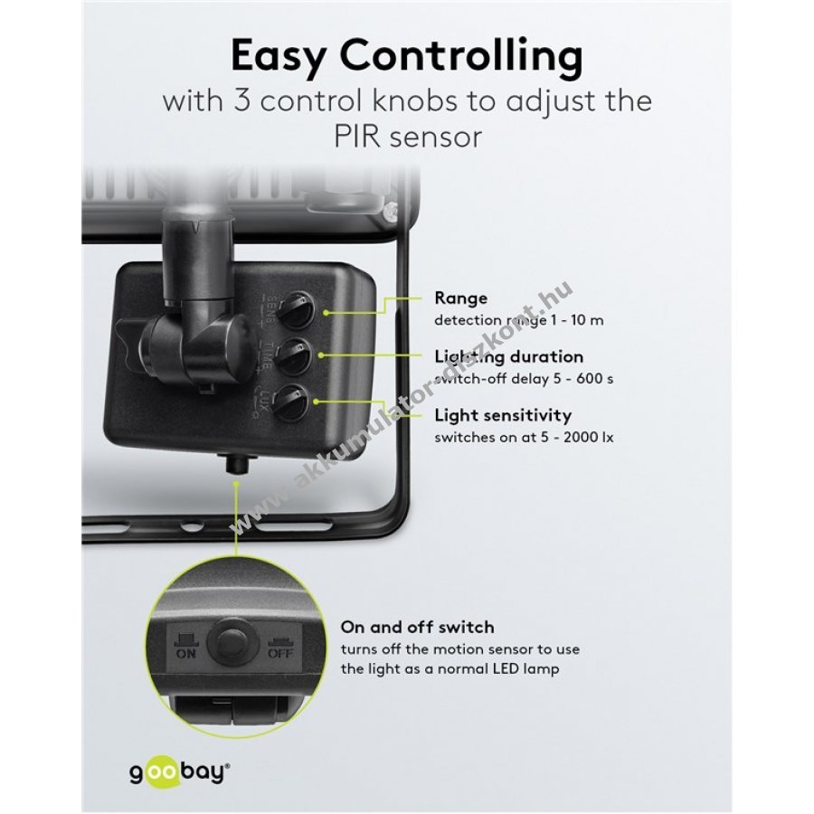 Kiemelt előny hogy a mozgásérzékelő ki- és bekapcsolható így normál kültéri LED világításként is használható
