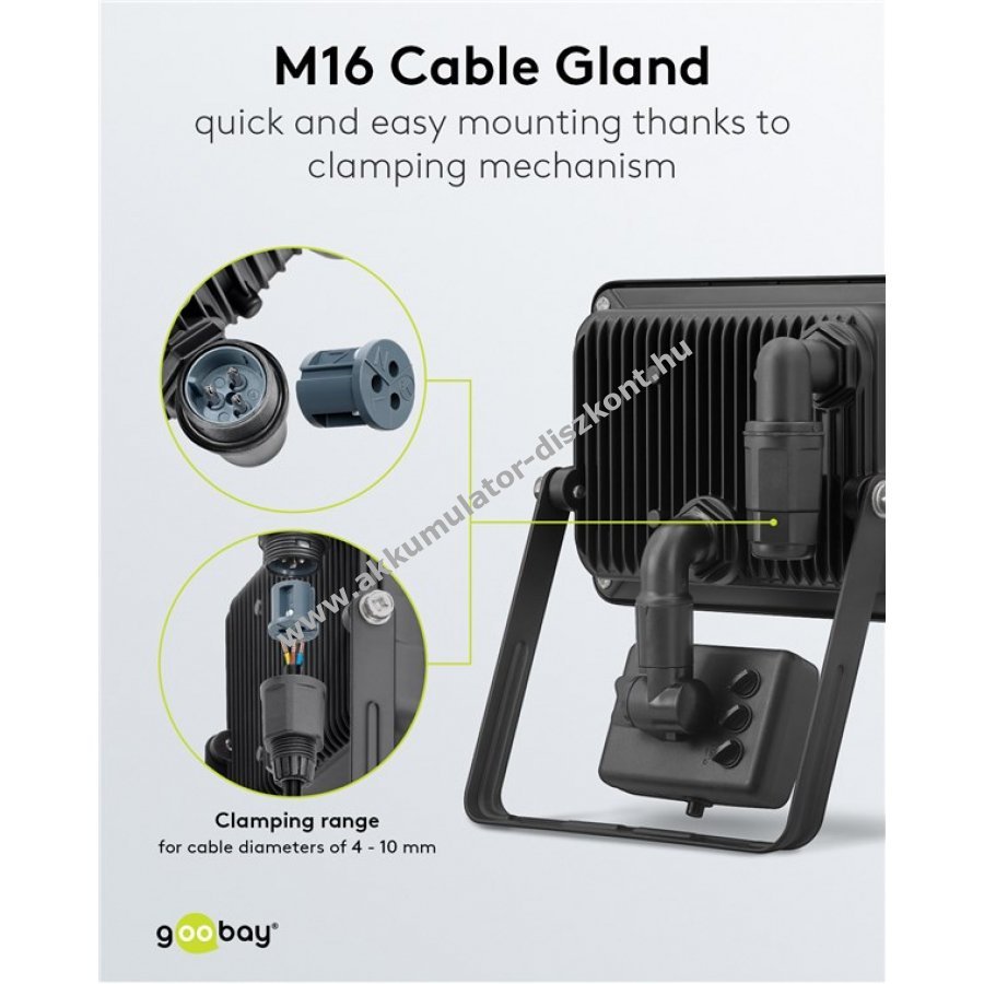 Gyors és egyszerű szerelés praktikus M16 kábelbevezetővel mely csatlakozó funkcióval rendelkezik a 4-10 mm kábelátmérőhöz