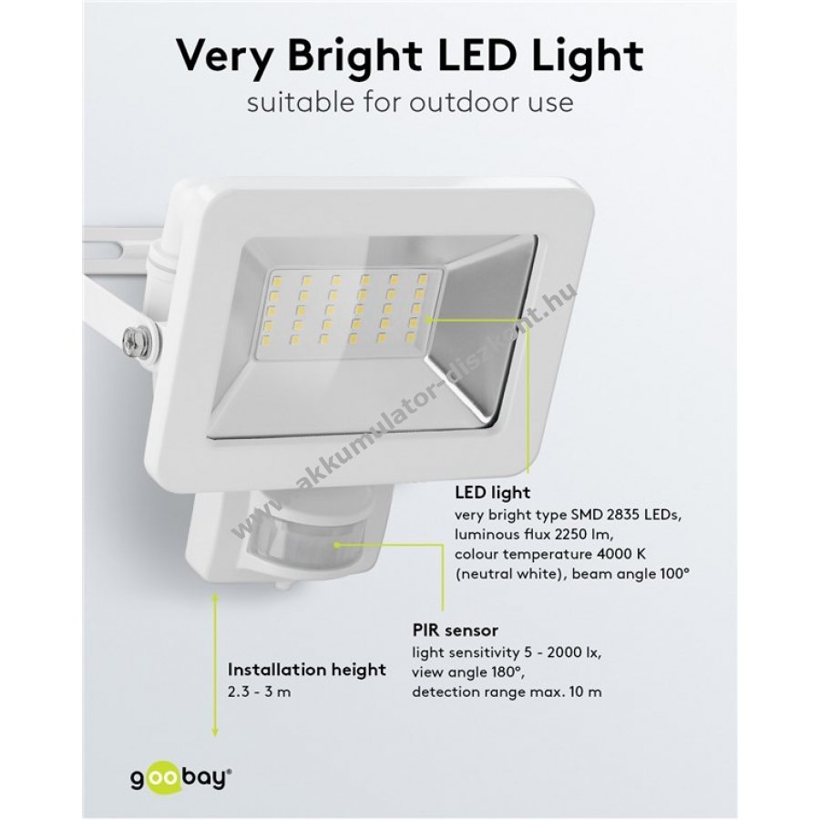 Goobay LED kültéri reflektor 30W mozgásérzékelővel 2550lm 4000K