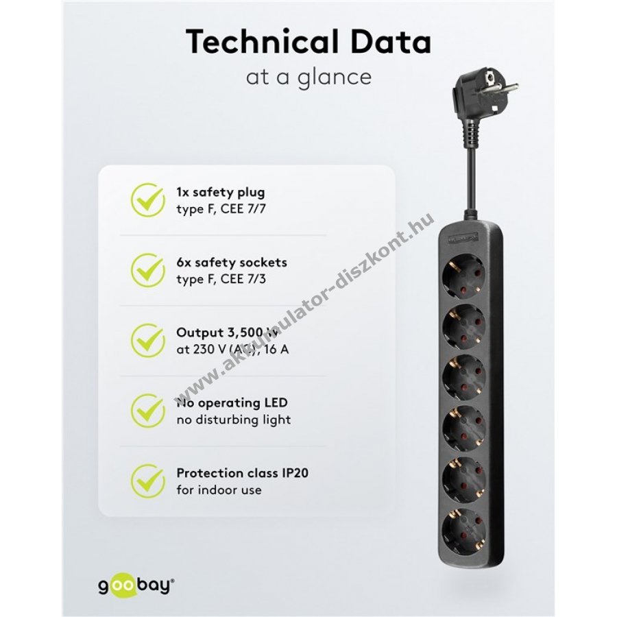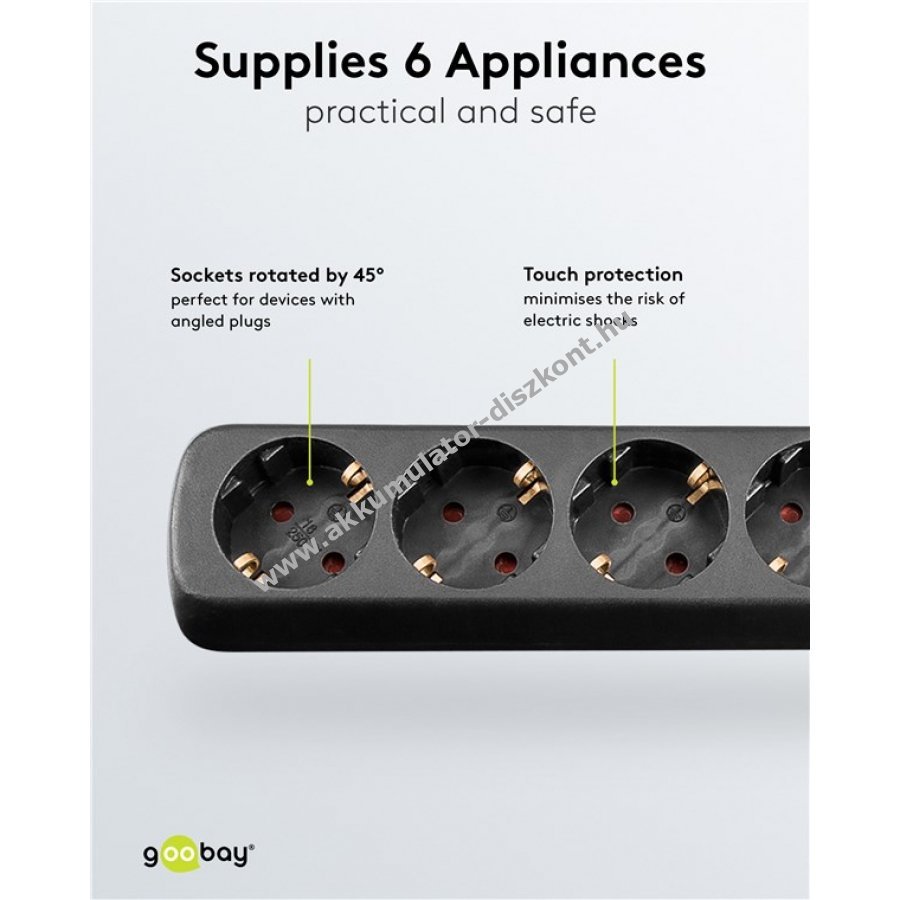 Goobay 6-os elosztó 5m fekete 6x fém érintkezős aljzat