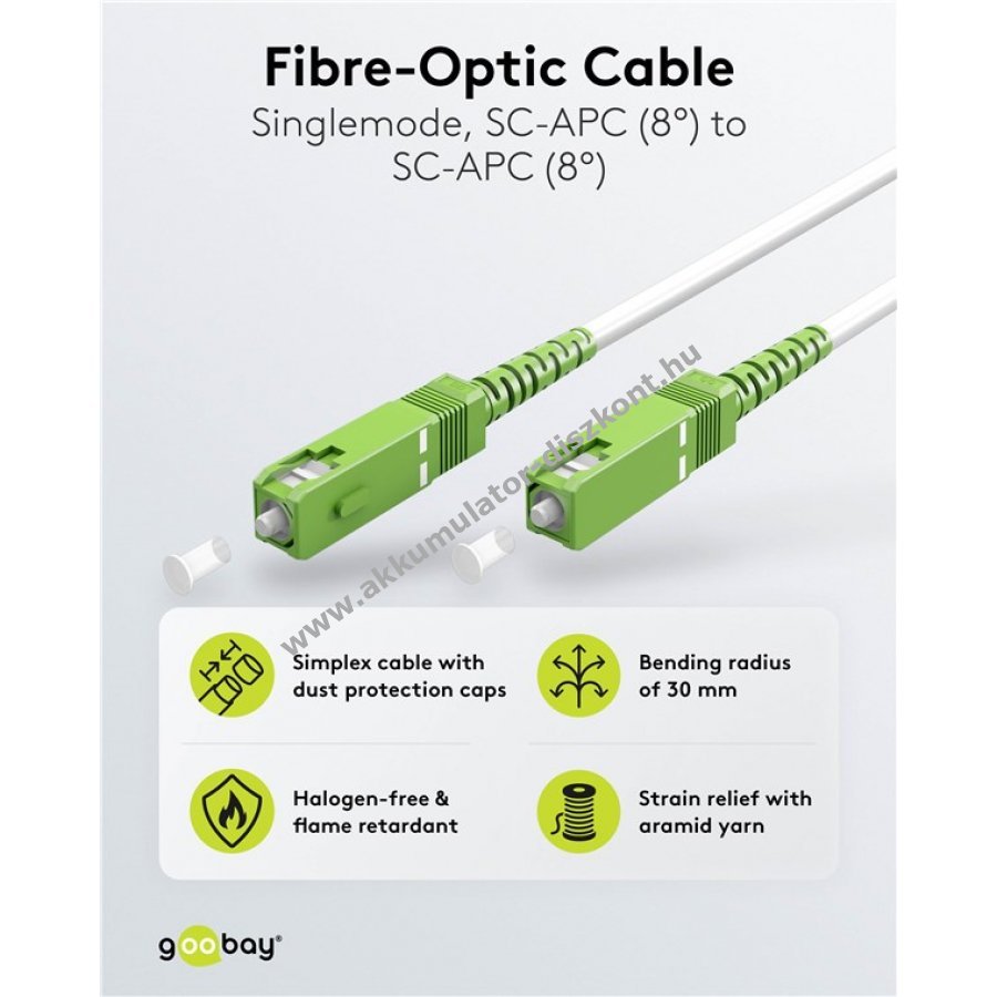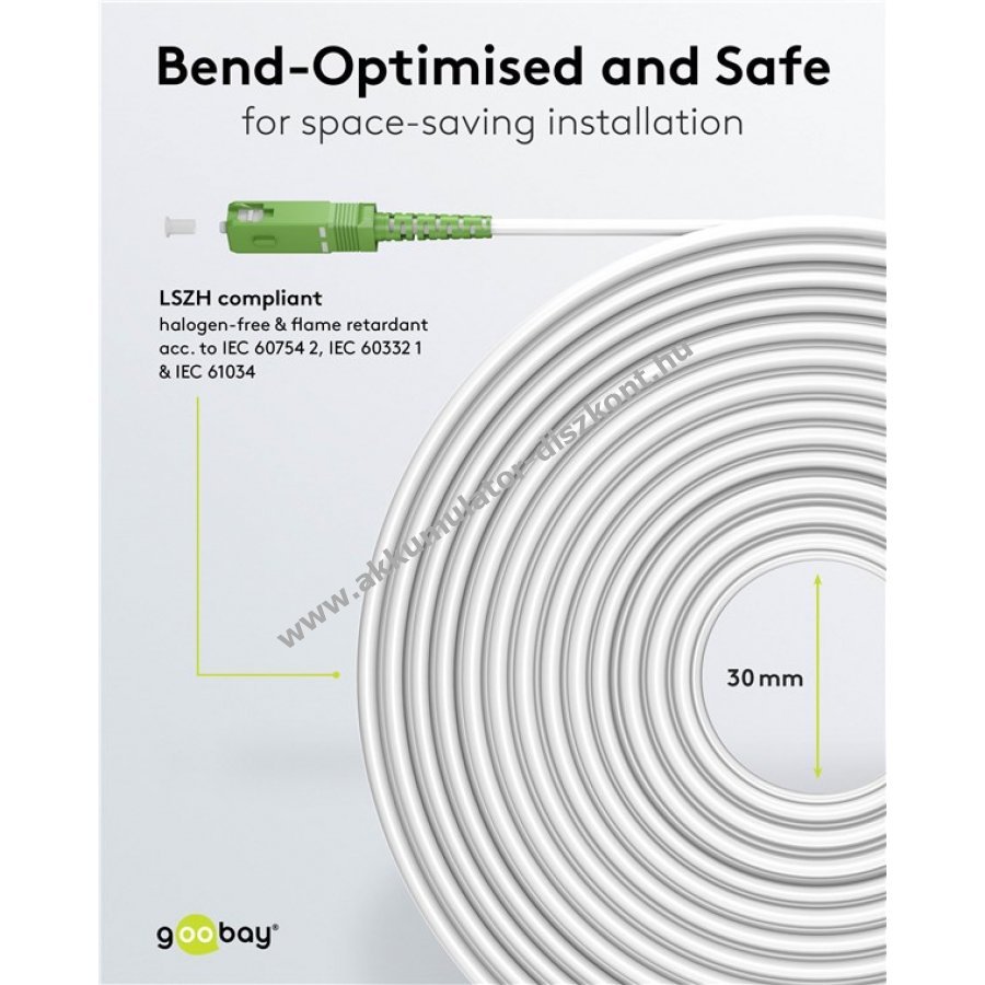 Az üvegszálas patch kábel otthoni és ipari felhasználásra alkalmas, kompatibilis a Telekom Deutschland Vodafone Deutsche Glasfaser FTTH kínálatával. A hajlításra optimalizált Singlemode (OS2) szál helytakarékos telepítést tesz lehetővé anélkül hogy a csillapítás nőne.