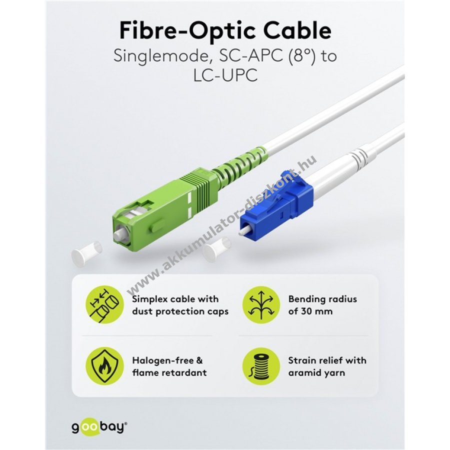 Goobay üvegszálas kábel FTTH Singlemode OS2 3m SC-APC LC-UPC halogénmentes LSZH
