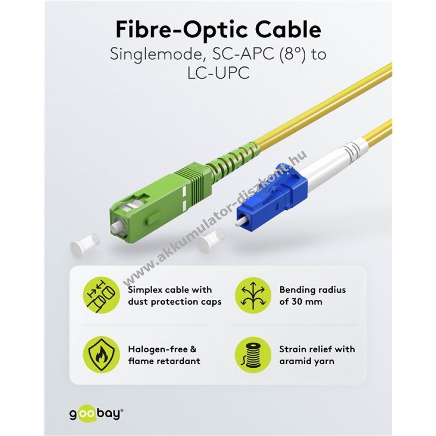 Goobay 3m sárga Singlemode (OS2) üvegszálas kábel SC-APC LC-UPC csatlakozóval LSZH