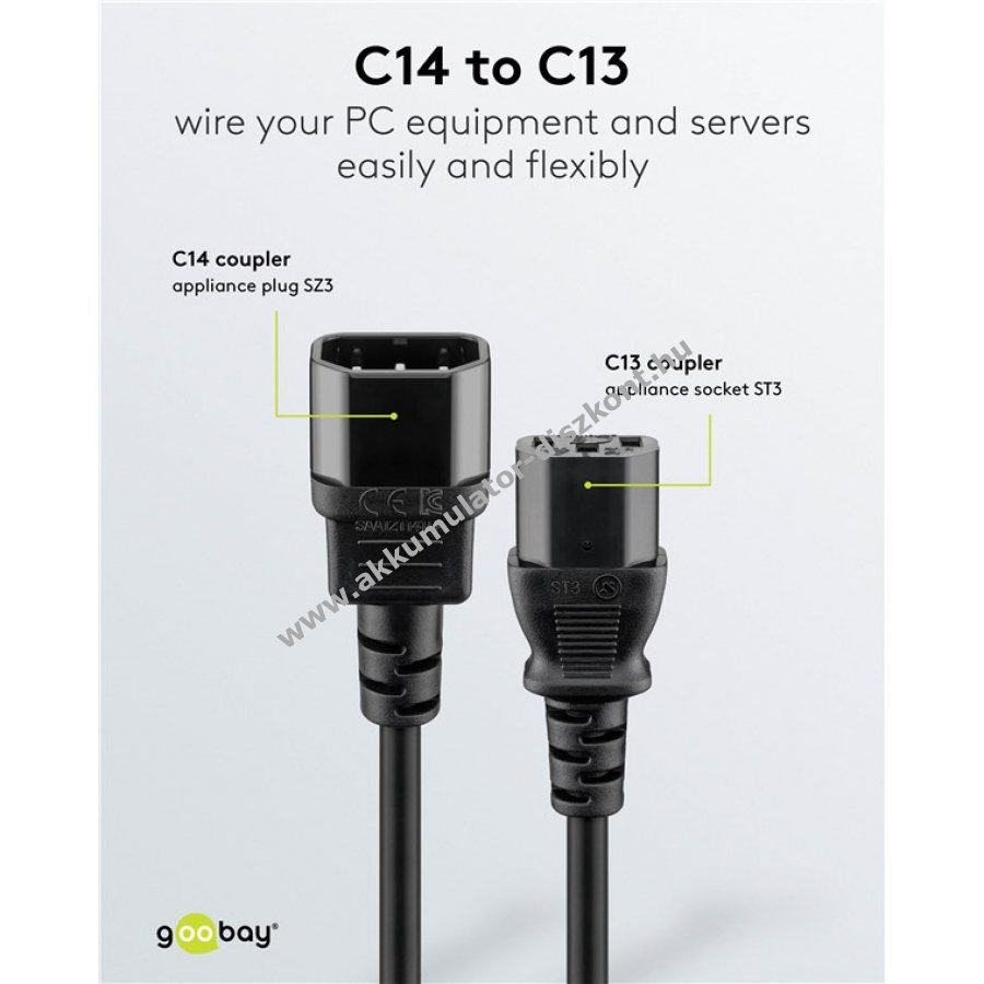 Goobay Kábel hosszabbító 1,8m fekete C14 dugó C13 aljzat